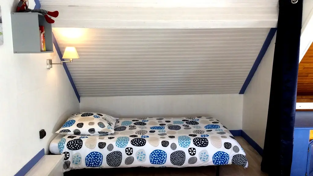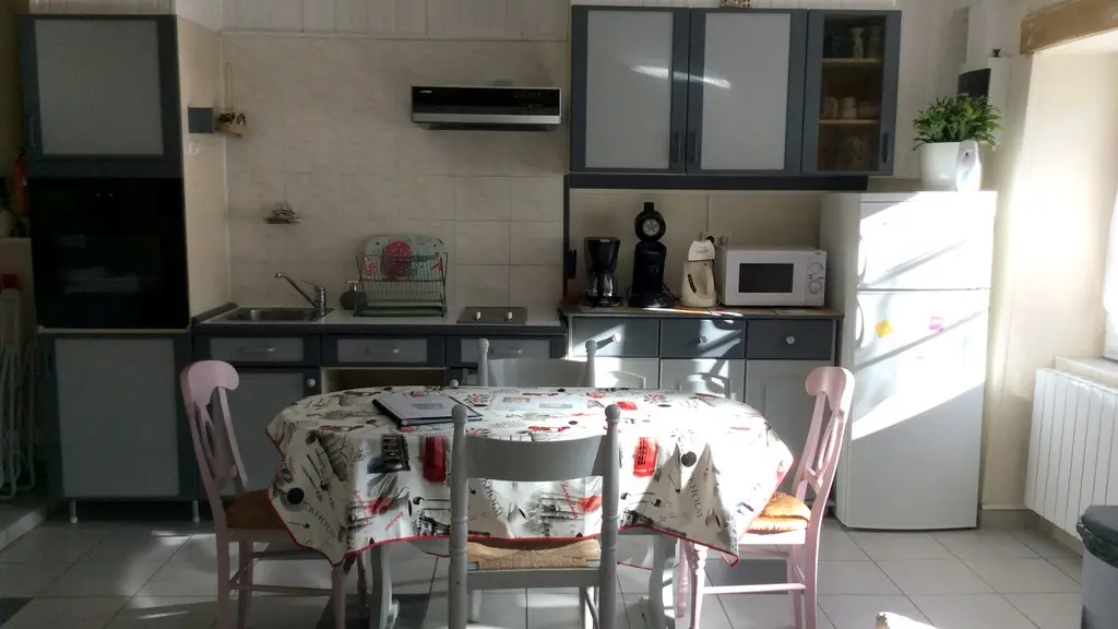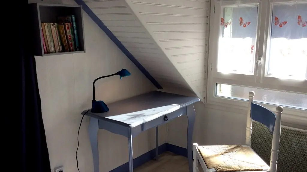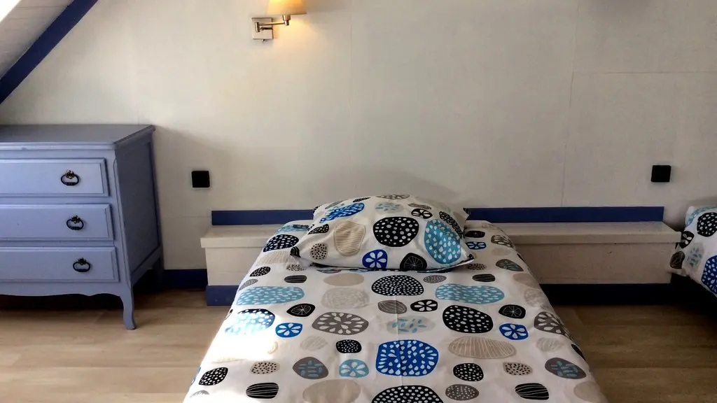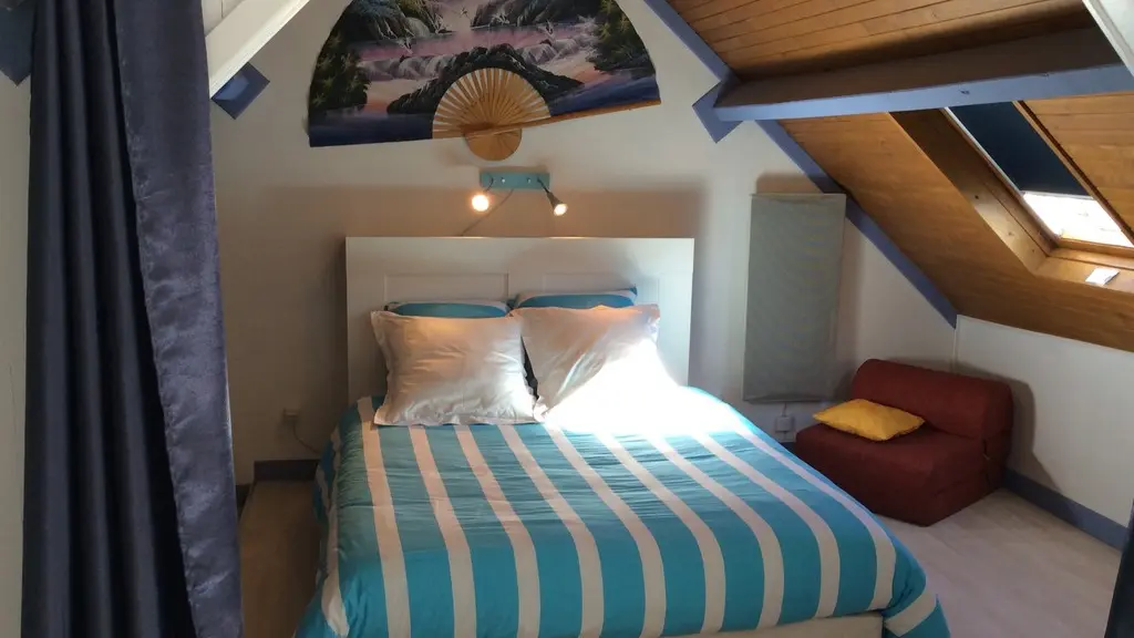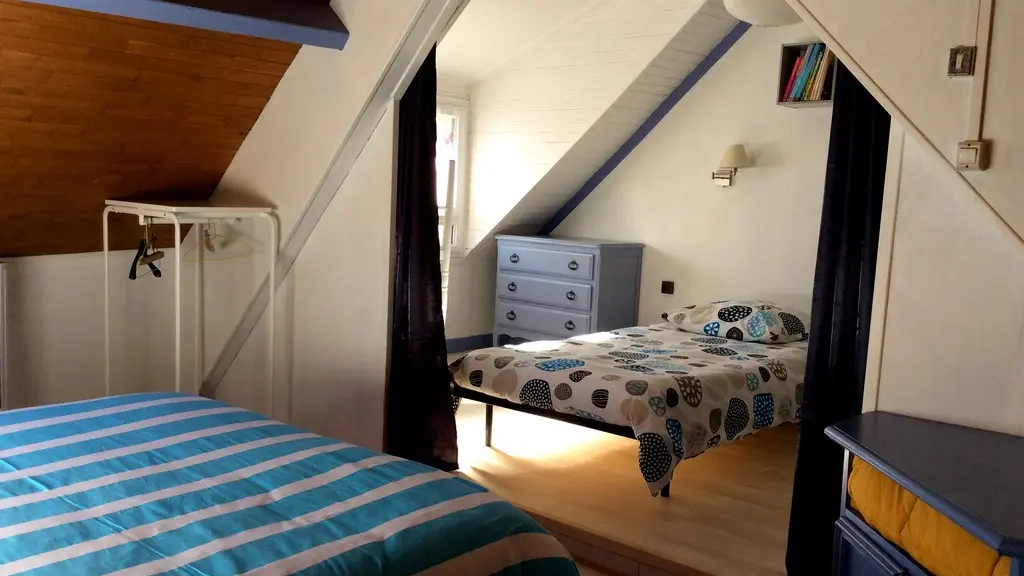 Under the roof, 2 charming bedrooms (1 bed 140, 2 beds 90, linen provided) separated by a thick curtain have been installed. The shower room/WC are on the ground floor. The whole is well renovated, pretty and functional. Everything is there for a successful green holiday experience!