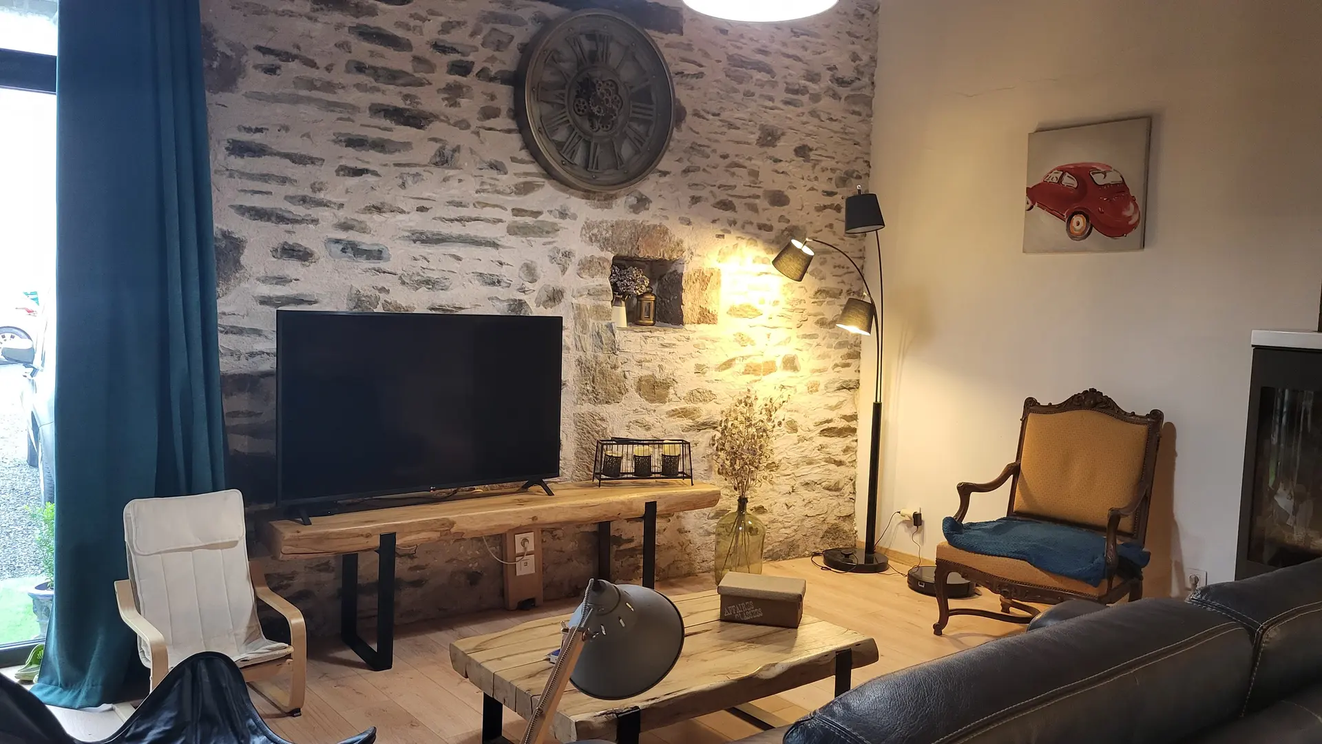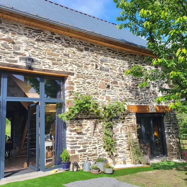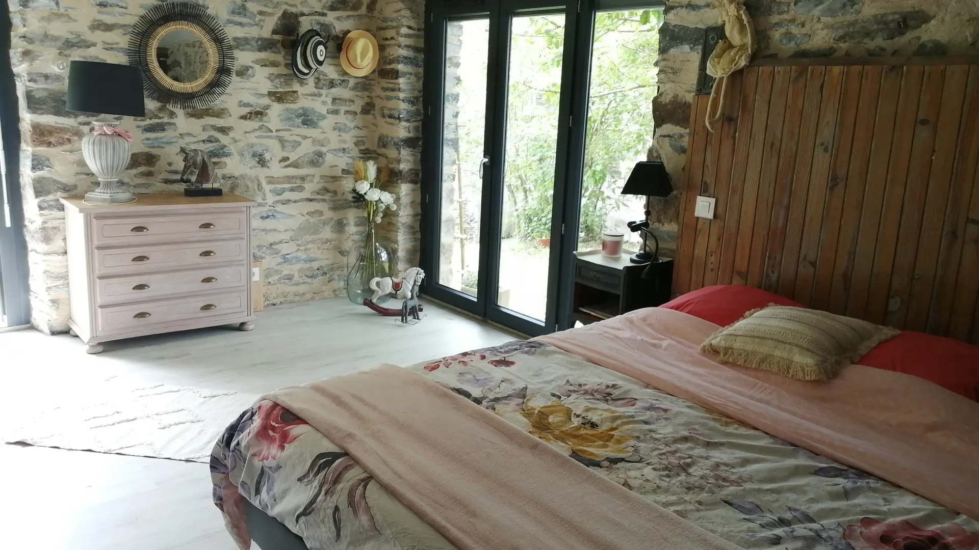 Let yourself be lulled by the sounds of nature in this renovated loft-style barn, not overlooked, with all comforts, including large interior spaces, 3 double beds including 1 160cm bed, bathroom with shower and bathtub, tasteful decor, table soccer, games for all, large terrace with flowers, outdoor solar shower, secure swimming pool, large private grounds with river at the back, located 25 minutes from the Dordogne and the Lot.