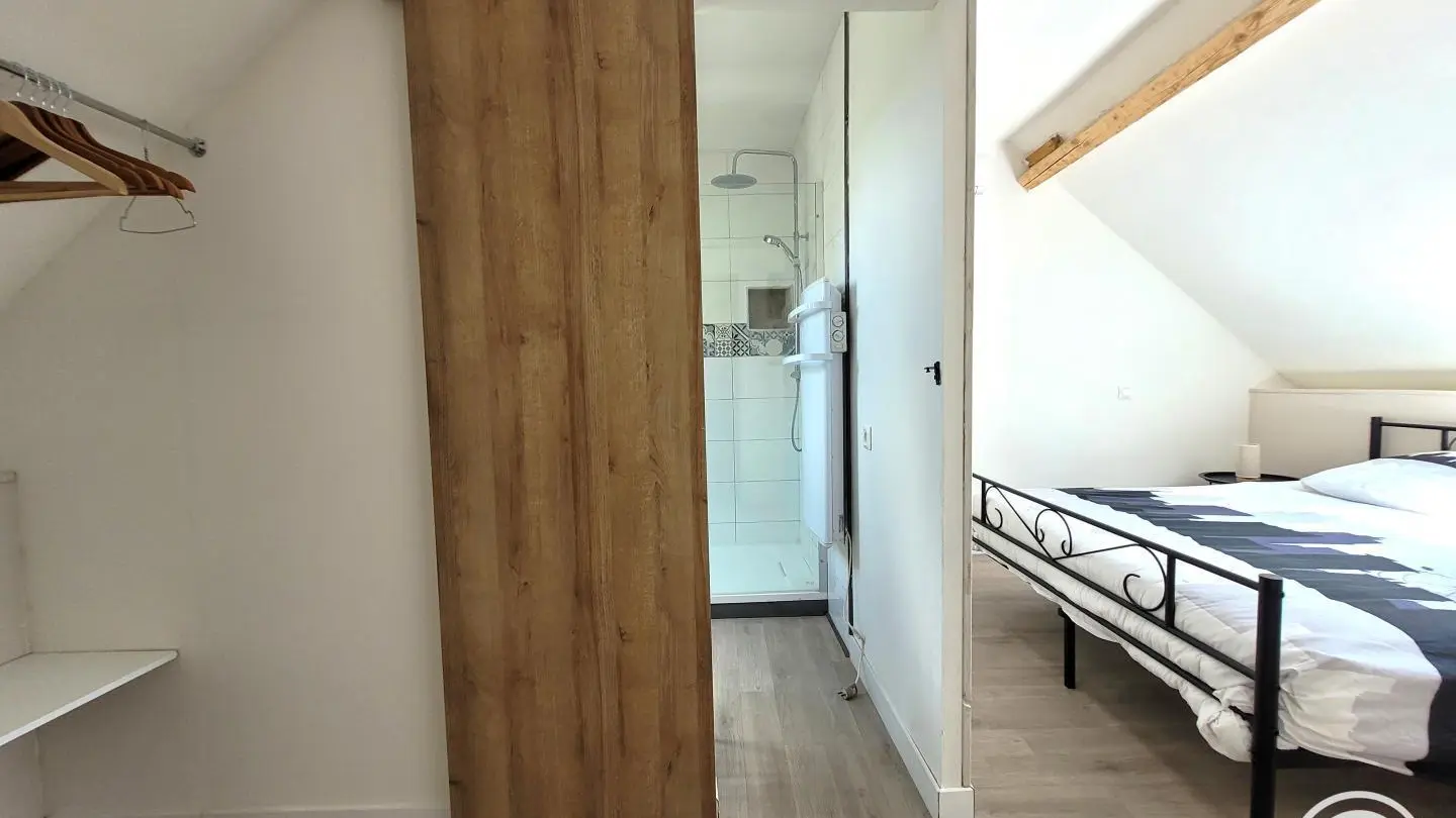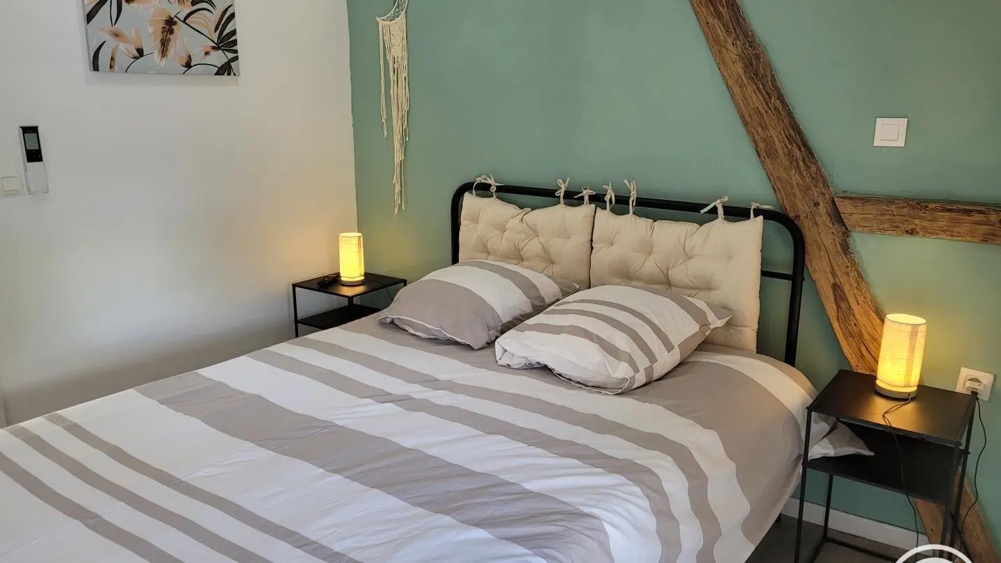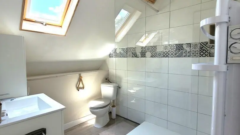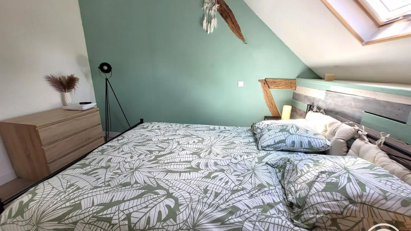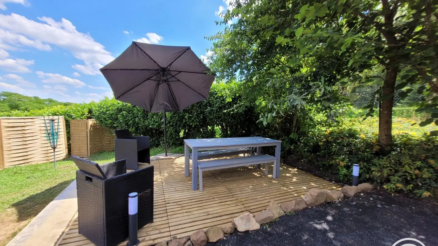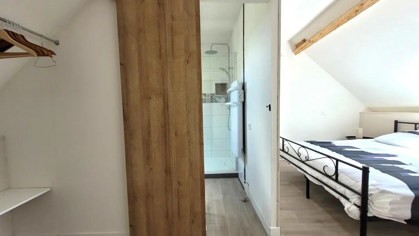 Completely restored stone barn with slate roof. - Red shutters frame a French window opening onto a small stone staircase. - Terrace equipped with garden furniture and barbecue, ideal for outdoor meals. - Quiet, leafy setting with plants and shrubs. Inside, a large attic living area with exposed wooden beams, comfortable sitting area with sofa, coffee table and TV. - Dining area with large table and chairs, fully-equipped kitchen open to the living room. -The warm, rustic decor combines modernity with elements of yesteryear. This gîte is perfect for a stay with family or friends, offering all the comforts needed to spend pleasant, relaxing moments.