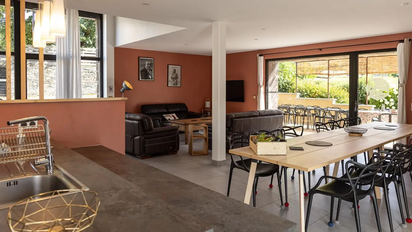 Just a stone's throw from Brive-la-Gaillarde, in a rural setting, La Grange de la Gissonnerie welcomes you all year round for a stay guaranteed to be 100% comfortable and 100% peaceful. Since 2020, Cécile has been renting out her gîte, designed for families or groups of friends looking for a reunion. Don't worry about a thing, we'll take care of everything! Business travelers in Donzenac, the Brive basin or Corrèze will also find everything they need for their team, with 6 fully-equipped rooms and an all-inclusive package. For the curious, there's so much to discover: Les Pans de Travassac less than 5 min away by car, or accessible on foot for the bravest, Collonges-la-Rouge and its unique architecture. The Corrèze and its neighbors in the Périgord, Lot and Dordogne regions are just a few kilometers and less than an hour away ...