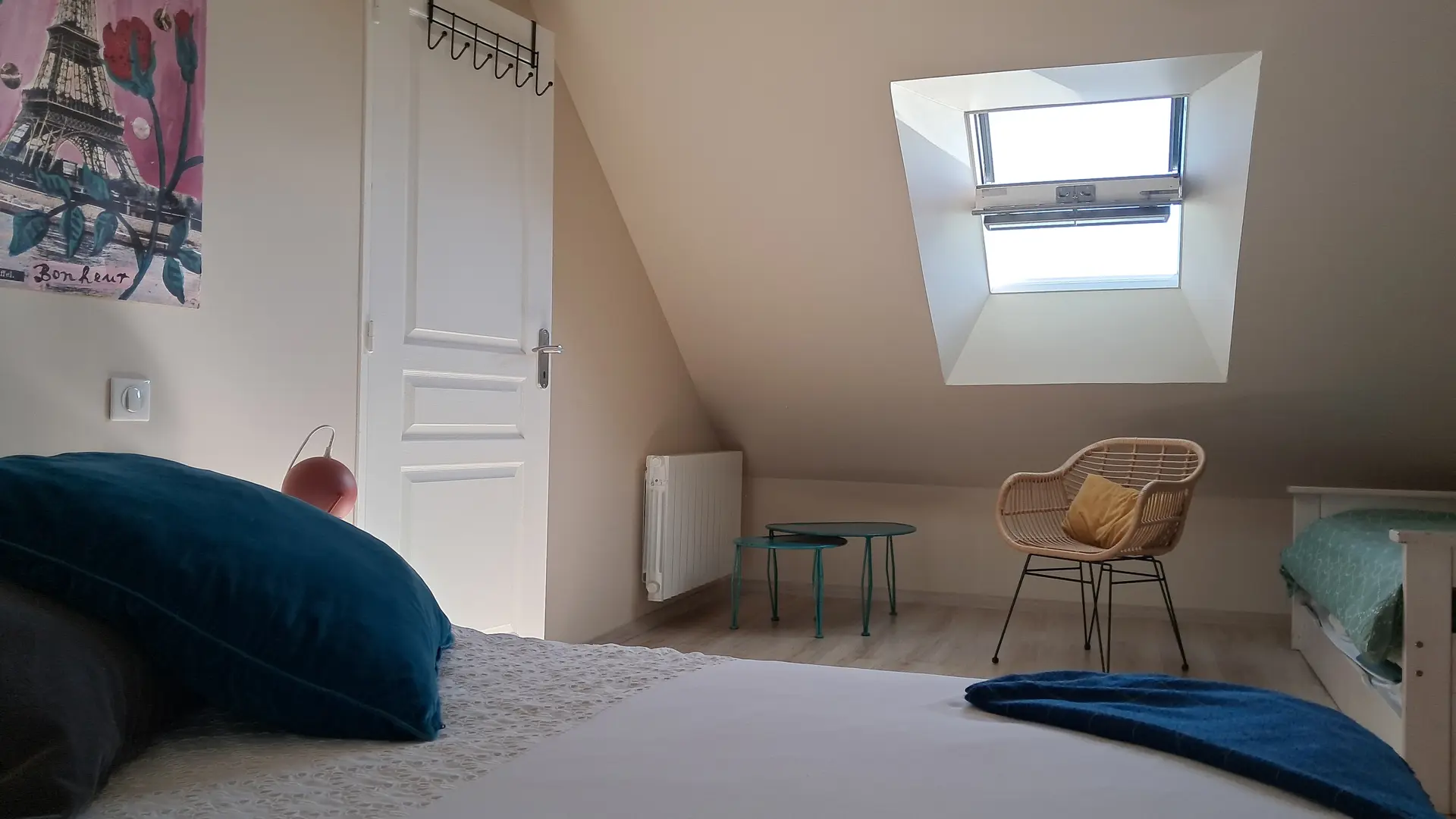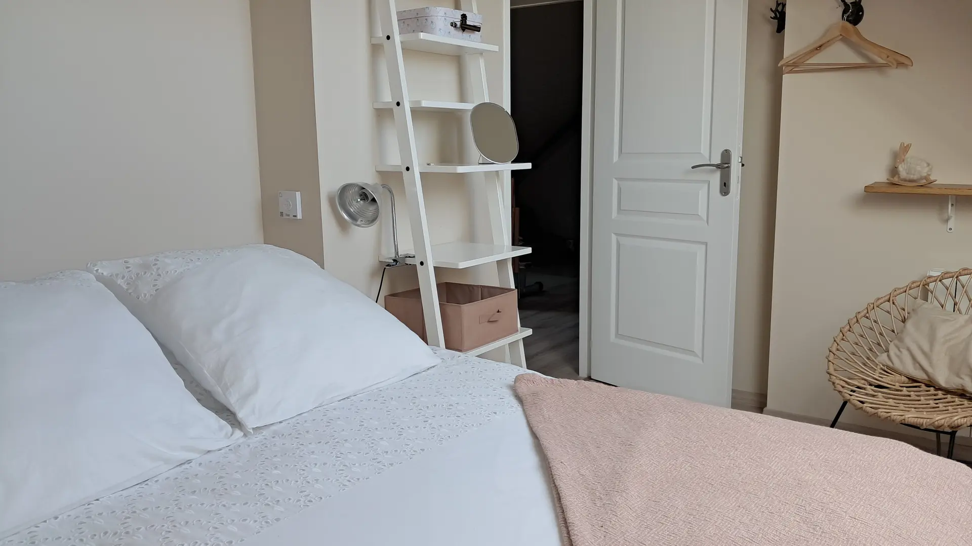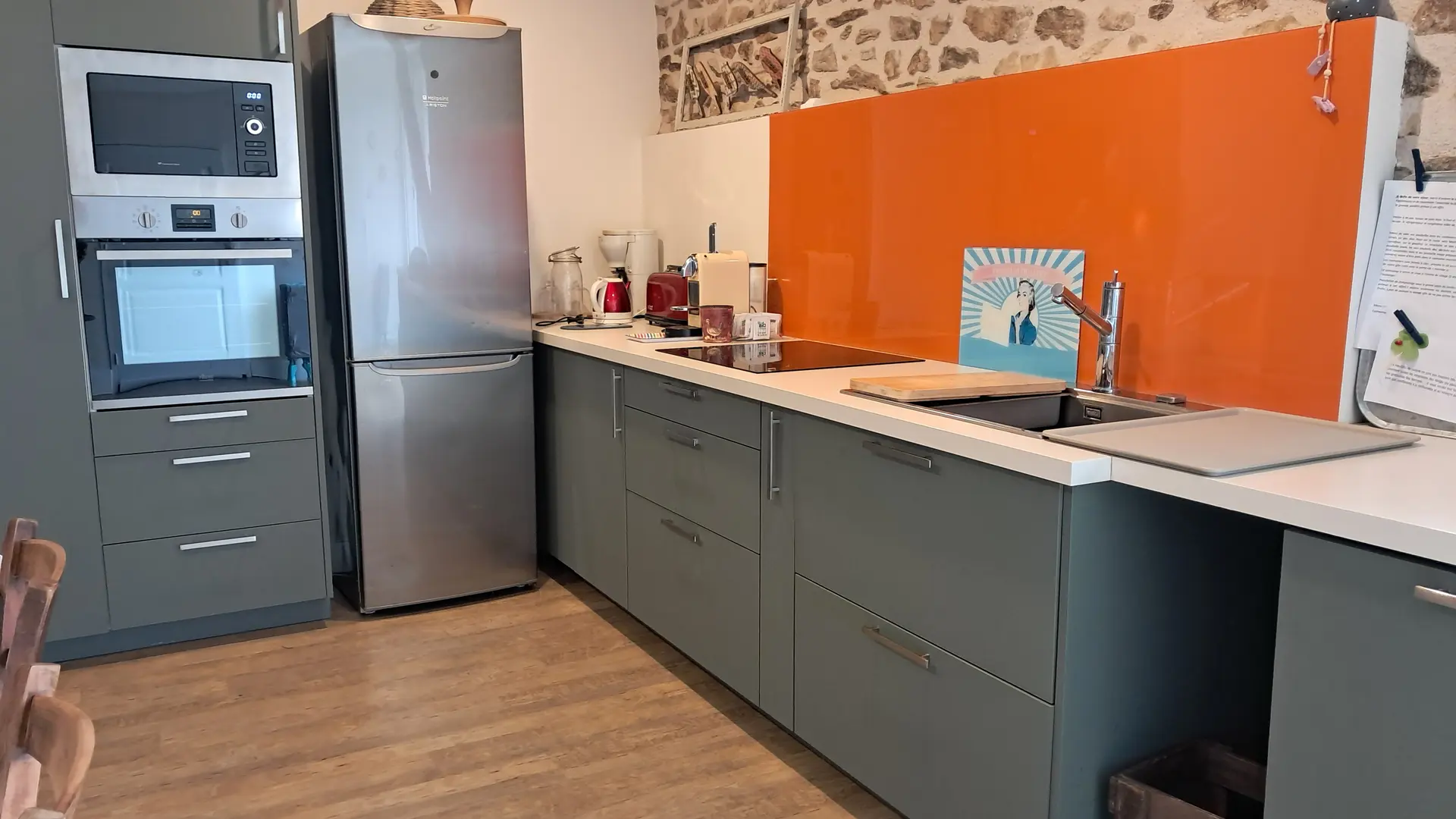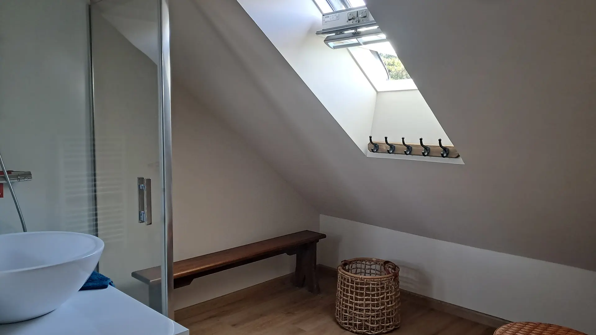 The gîte is accessible via its own ground-level entrance and comprises a bedroom accessible for people with reduced mobility (bed 140) with a bathroom/WC accessible on the same level, a main room of 60m2 with a fully-equipped kitchen, and a possibility for people with reduced mobility to use an electric lift from the entrance and the bedroom on the ground floor to the main room. The other 2 bedrooms (one with a 140cm bed, the other with a 160cm bed and 2 90cm trundle beds) are upstairs and share a bathroom and separate WC. Linen and cleaning included.