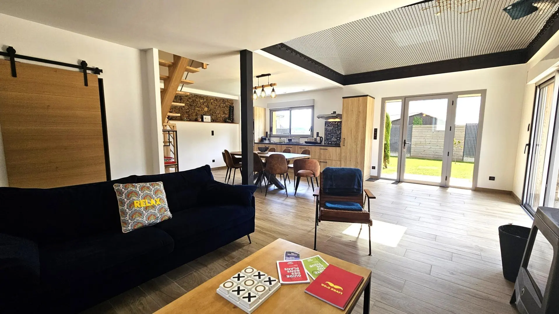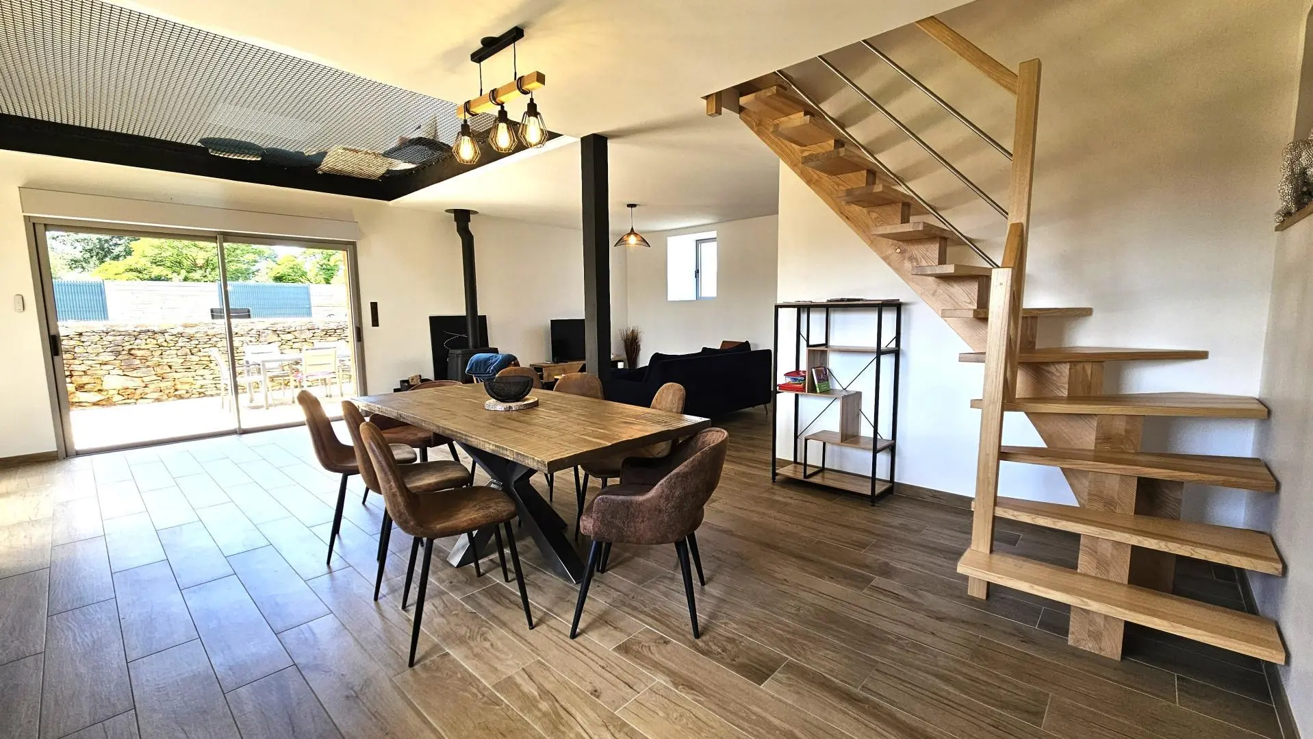 Located in Saint-Hilaire-Peyroux, this contemporary gîte, formerly a barn, has been completely renovated in a warm, modern style. Inside, the spacious rooms are decorated with care, accentuated by a marine net suspended from the living room ceiling, creating an original, relaxed atmosphere reminiscent of a catamaran. The functional, high-quality fitted kitchen opens onto a living room bathed in light thanks to large picture windows. You'll enjoy a terrace with electric awning, an enclosed garden and a private swimming pool (6.6m x 3.3m - depth 1.60m), ideal for a peaceful vacation. During your stay, you can explore the charming villages of Collonges-la-Rouge and Turenne, or enjoy nature in the Millevaches regional nature park. A wide variety of activities, including hiking, sightseeing, ...