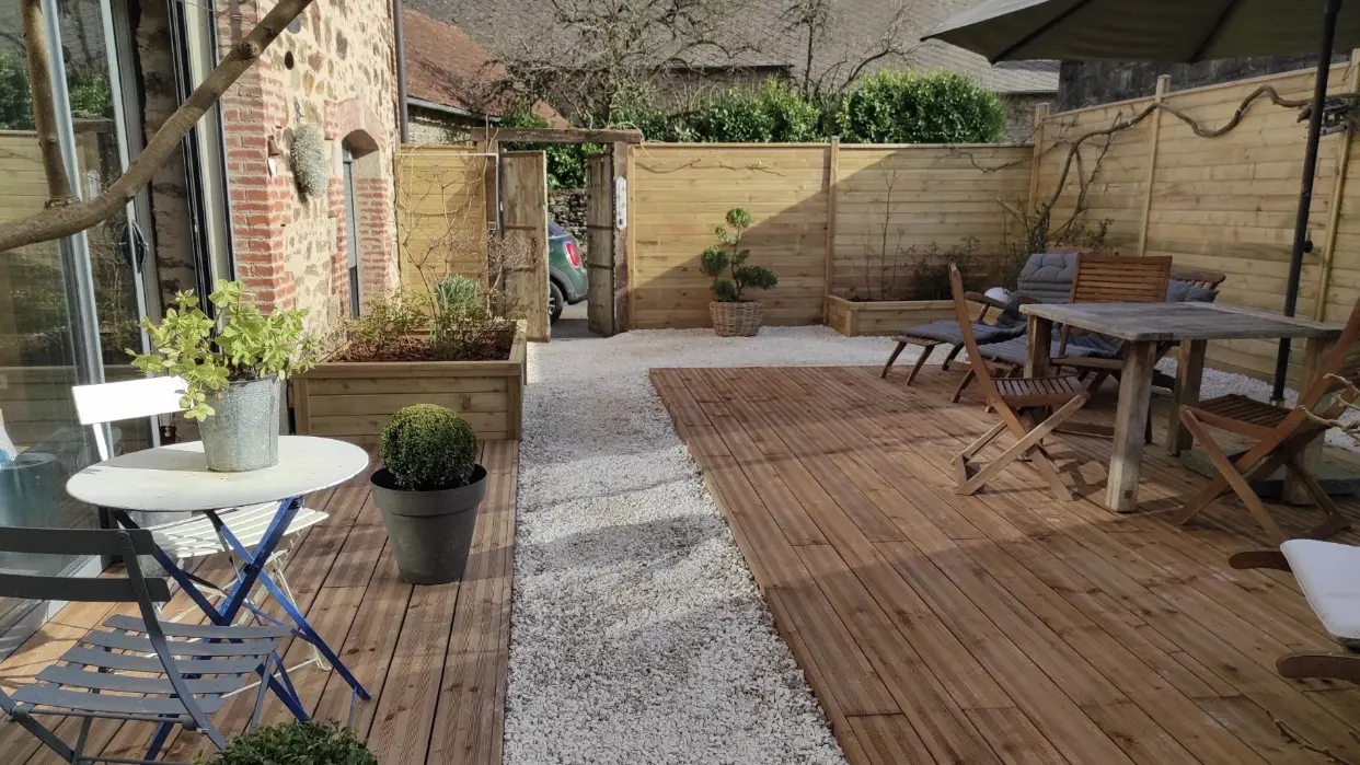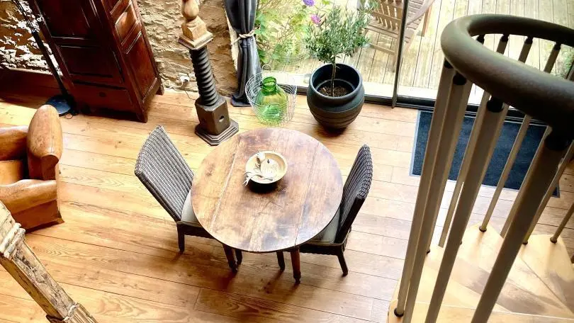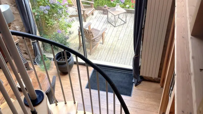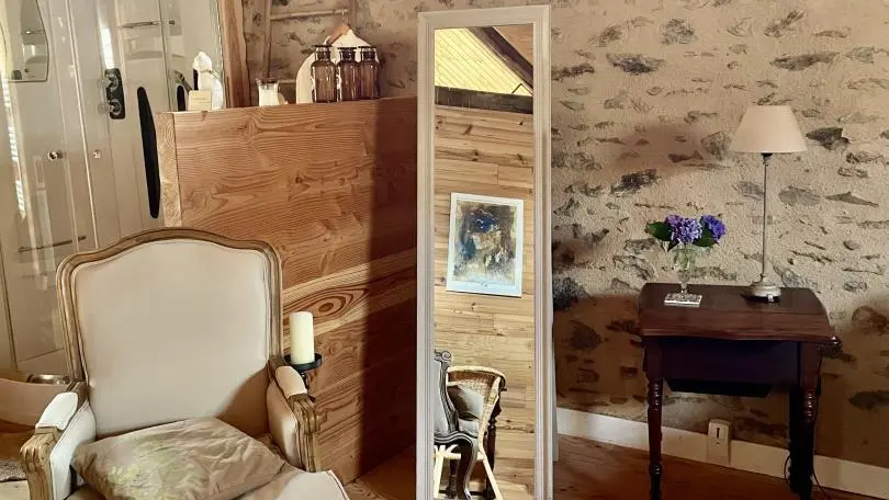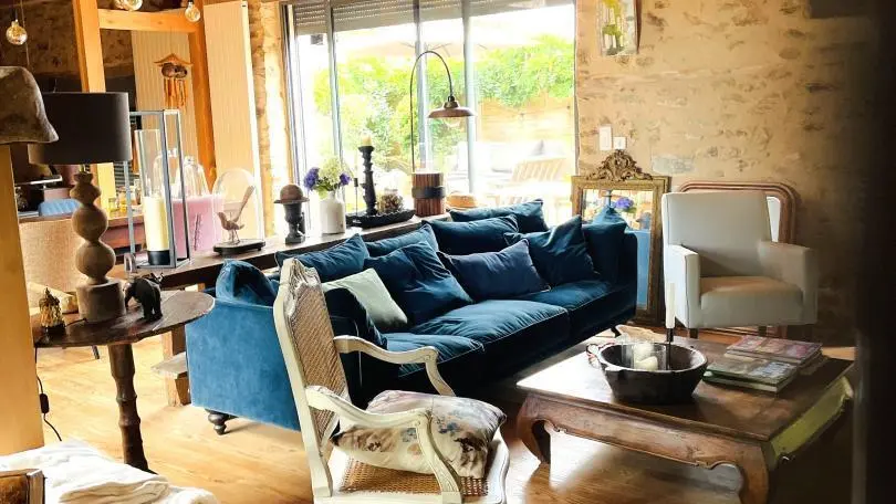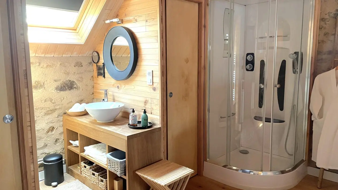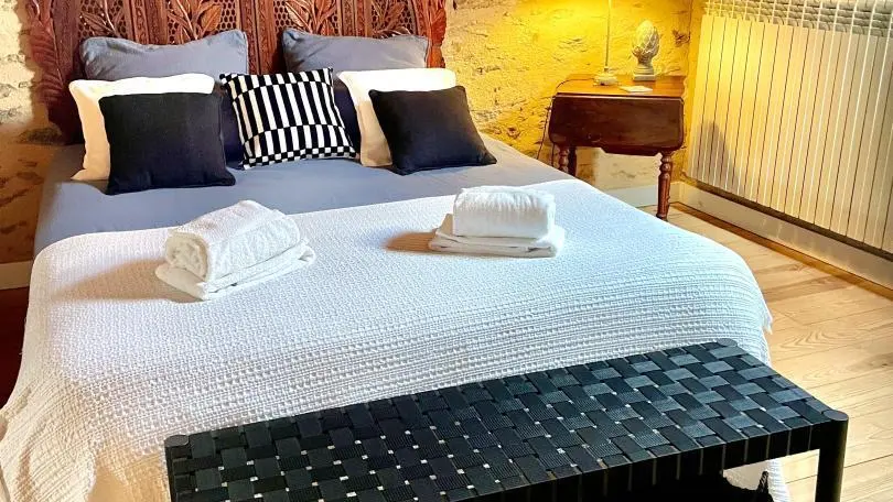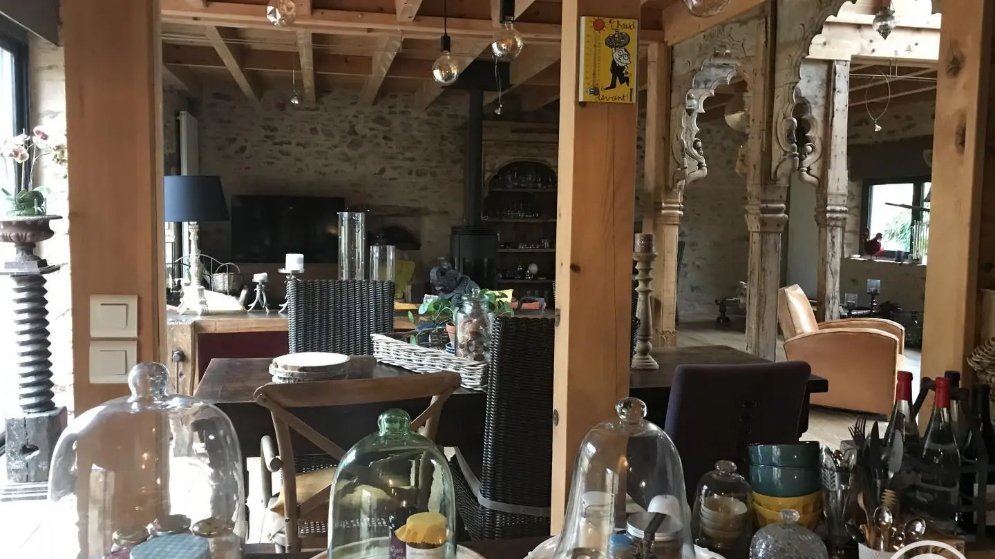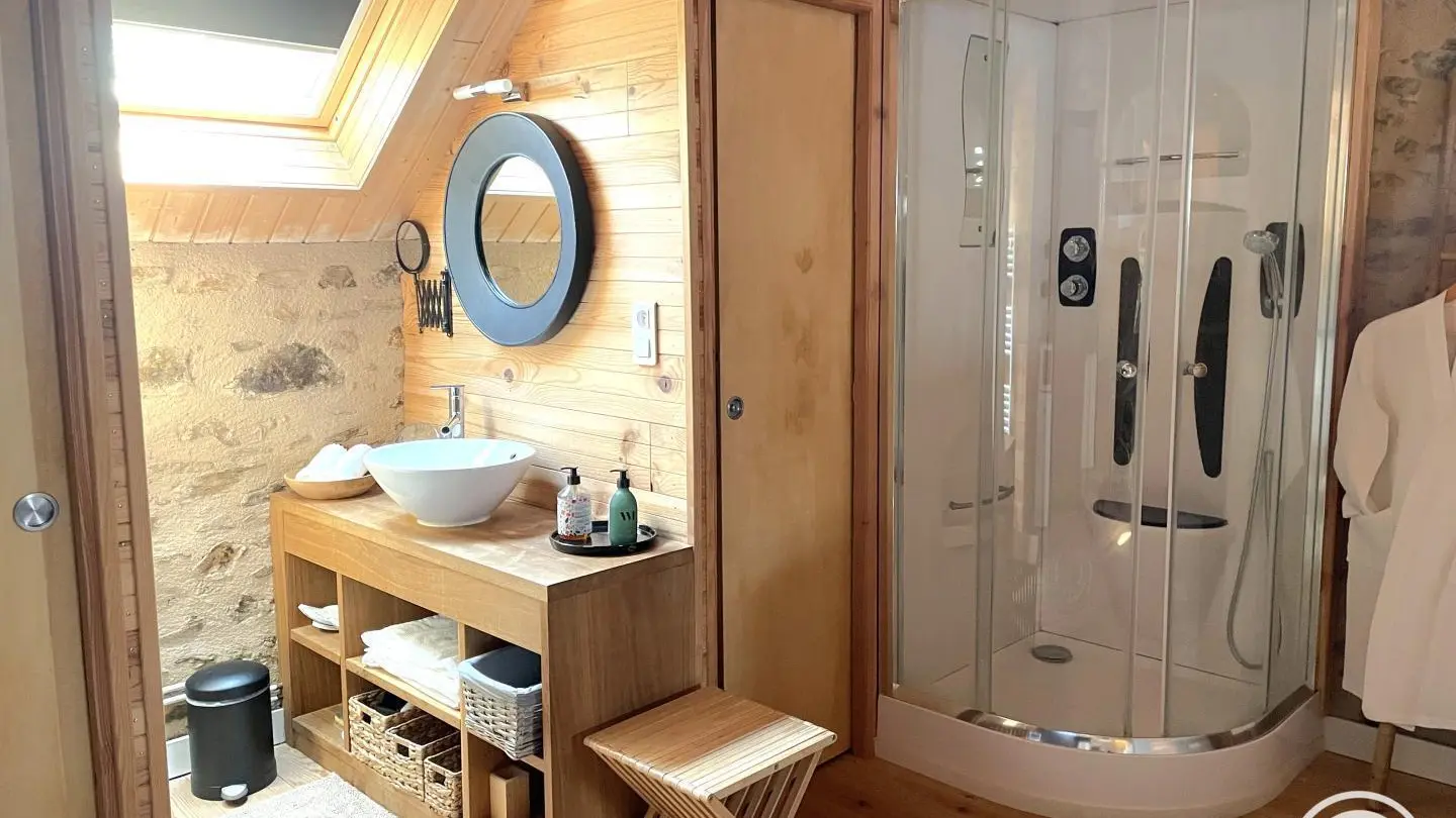 It's an old barn, renovated with wood and light. The large openings created give the sun's rays free rein to express themselves. Under the glass roof, with its Rajasthani architectural elements, each living space is organized. A home that gives you the feeling of a traveler, like a stopover on the way to another port. A place for two, but also a place to be with oneself; the atmosphere of the house nourishes you with serenity and calm. At the end of the staircase climbing over the arches, set in one of the traditional gables, the bedroom (1 bed 160, 1 extra bed) with its refined style and natural tones offers you calm and rest. Baby equipment available on request. Free outdoor spa (not covered). Indoor Jacuzzi on ground floor, surcharge 15 ?