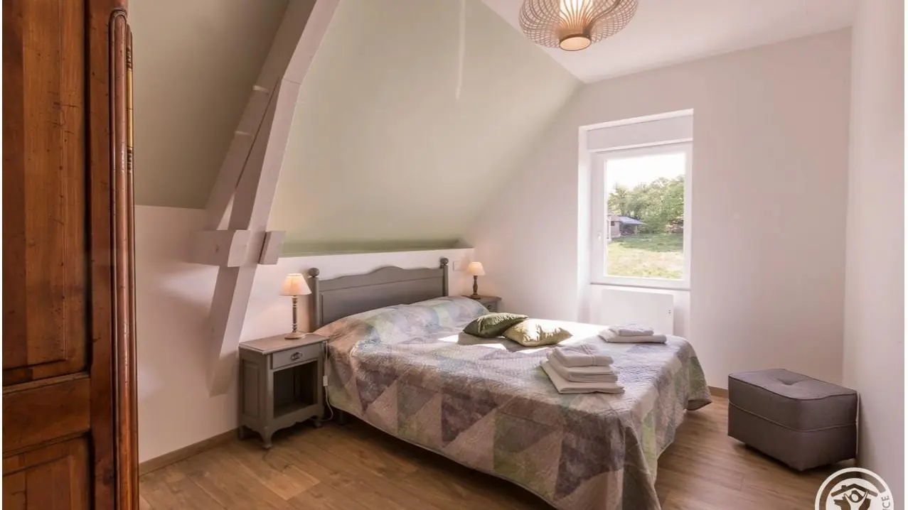 La Maison de Renée (non-smoking) is a beautifully restored old farmhouse on the edge of a peaceful hamlet. Situated on the edge of a forest, you'll enjoy the restful calm of the countryside, 15 km from the town and its many activities. The large south-facing bay window opens onto a terrace and a vast clearing. It can accommodate up to 12 adults and 3 children.