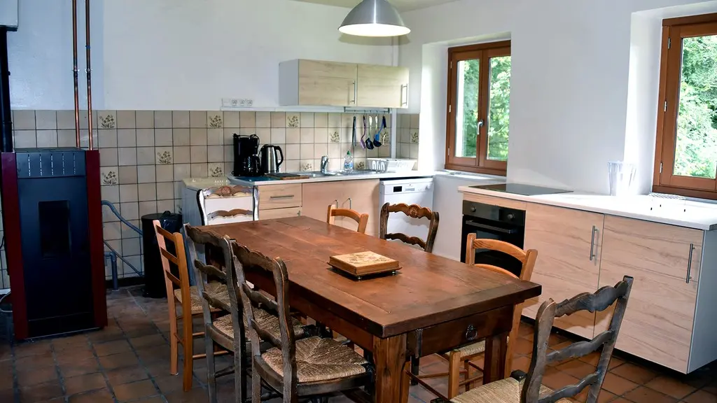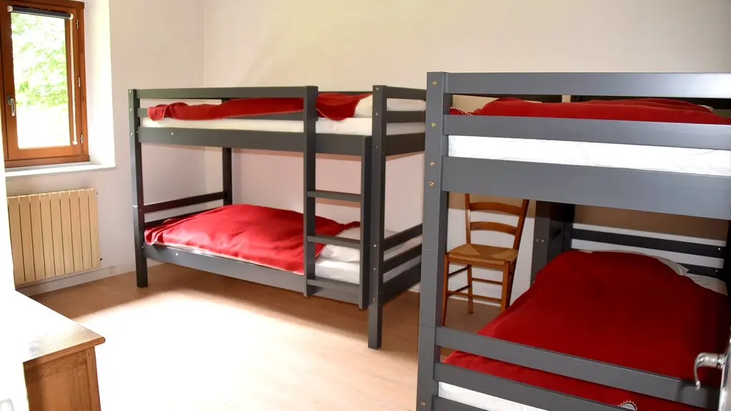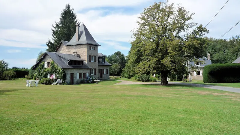 This pretty, simple and comfortable house, recently renovated, is located in a hamlet with a second gîte, bringing the total capacity to 14 people. The house is designed for 8 people and is on one level, open onto the countryside and the woods. It is equipped with an independent kitchen (oven, washing machine, dishwasher, fridge/freezer), a living room warmed in winter by a fireplace (wood offered, TV, DVD player). Three bedrooms (1 double bed, 2 twin beds, 4 bunk beds) and 2 shower rooms/WC complete this pleasant and functional ensemble.