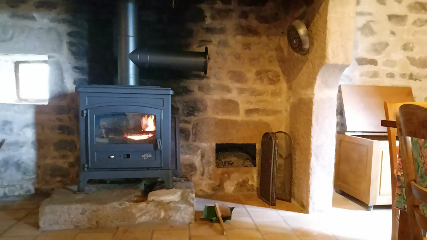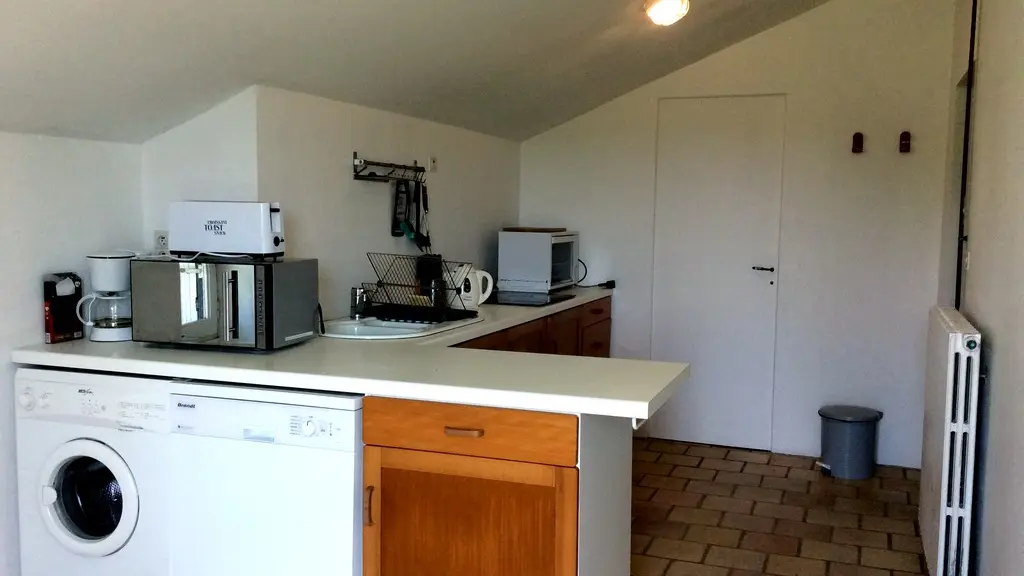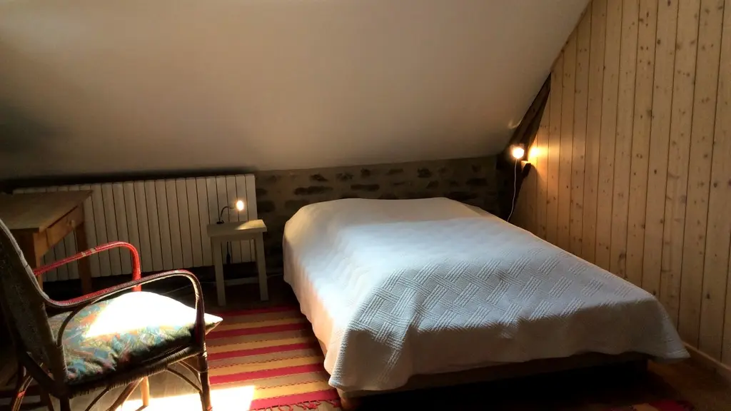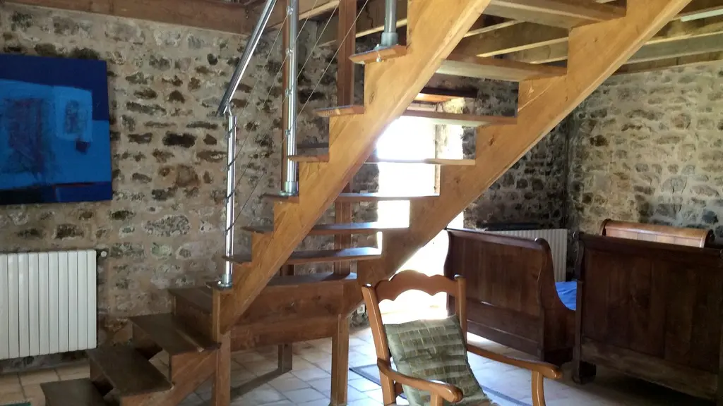 In need of peace and quiet, in a 100% natural environment, this country house has been restored in the spirit of a "vacation home", with its rustic feel, and offers privileged reception conditions: a vast living room for lazing around, a well-equipped kitchen for sublimating local produce and, on the ground floor, a bedroom (1 x 90cm bed, 1 x 110cm bed) enclosed by a rough stone and pine partition. The bathroom is on the same level.