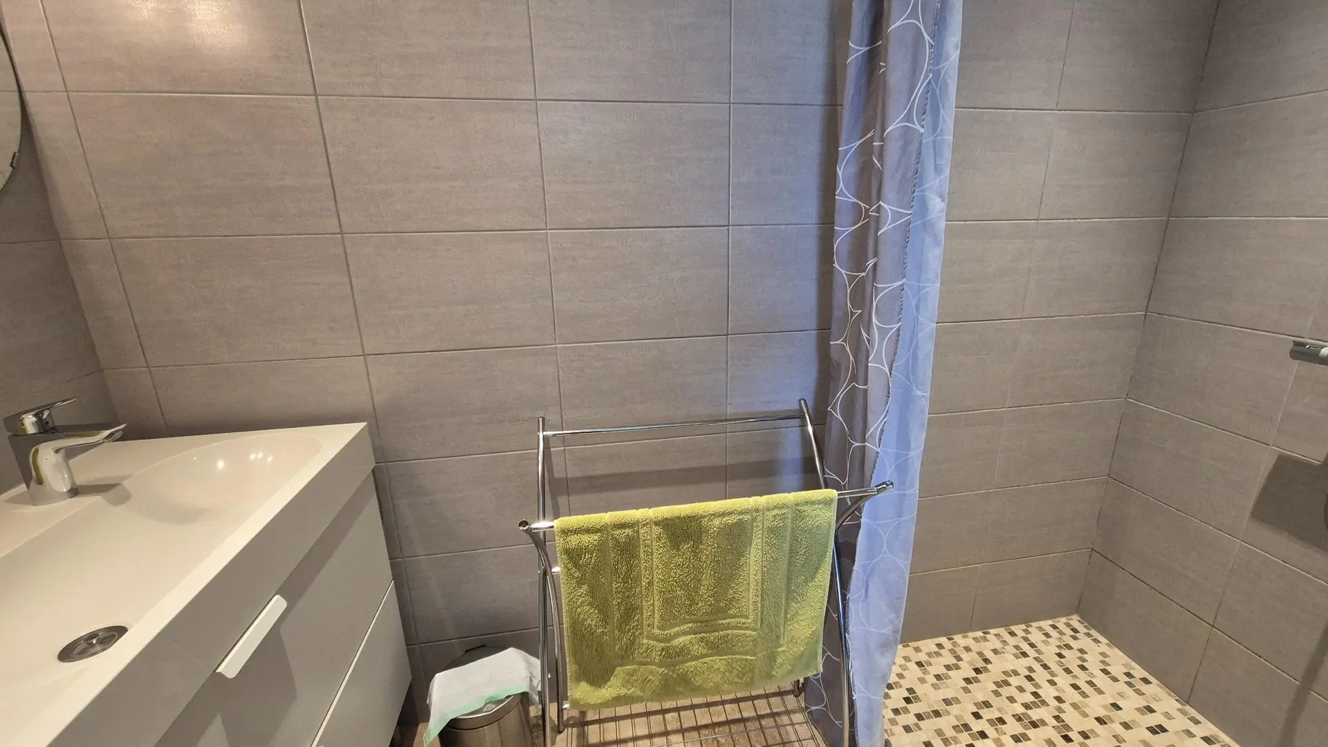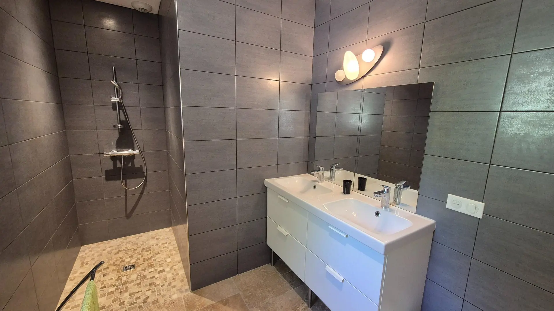 A shower room with walk-in shower,