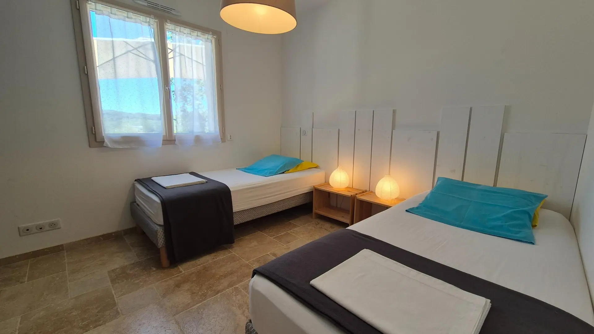 One bedroom with 2 single beds (90cm),