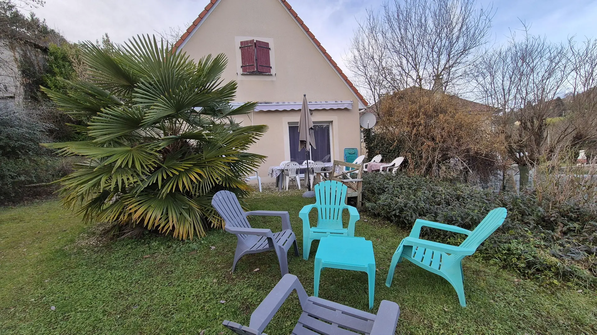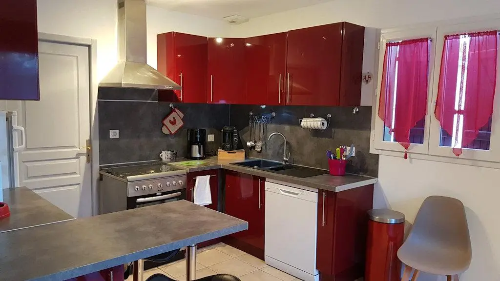 In Sarlat, rather in the countryside, vacation home with private, unenclosed garden, located just 1 km from the medieval town.You'll find all the comforts you need for a great vacation.Large terrace with garden furniture and barbecue.Ideal location for visiting all the region's exceptional sites and our riverside beaches less than 15 minutes away by car.Private parking for 2 cars.1 st Supermarket 800 m awaysupermarket 800 m away.Market, bars and restaurants in town center 1km away.Cycle path 4 km away: bring your bikes! Municipal swimming pool 4 km away.Hiking trails 1km away.Garden level: living room with fireplace, dining area and open-plan kitchen. 1 laundry room, 1 WC.1 bedroom (1 double bed 140) - 1 shower room - 1 WCUpstairs: 2 bedrooms with 2 single beds 1401 shower room - 1 separate WC.