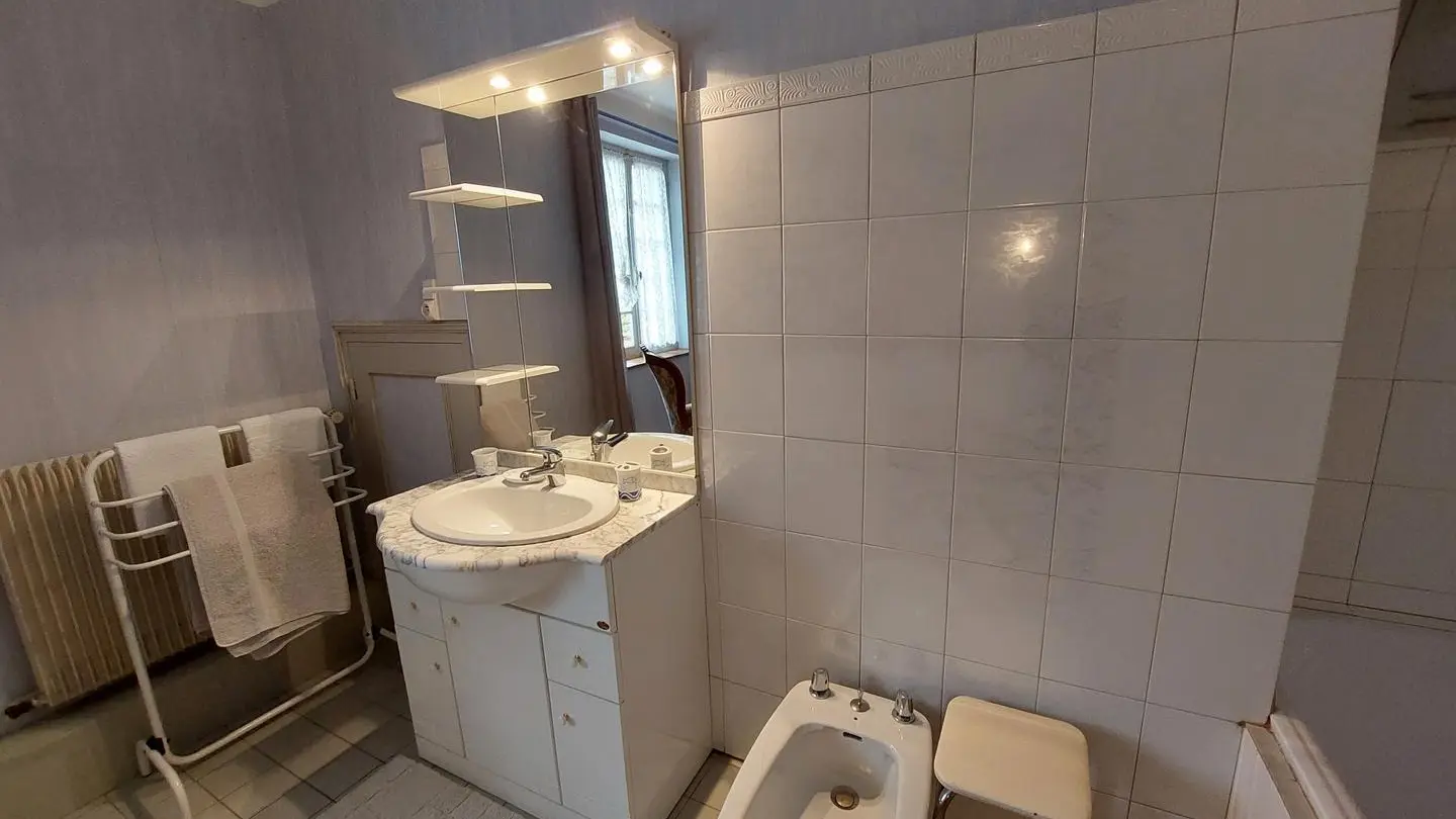 This family house offers 4 bedrooms with 4 double beds 140, 3 bathrooms with bath - and 3 toilets.(2 bedrooms on the ground floor with 1 shared bathroom, 2 large bedrooms upstairs with 2 private bathrooms)