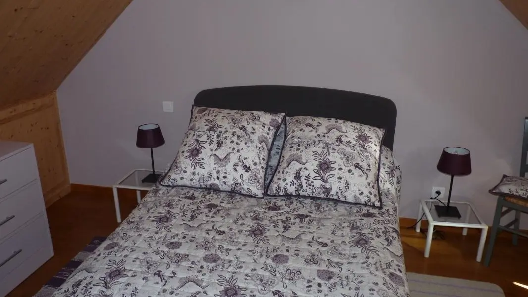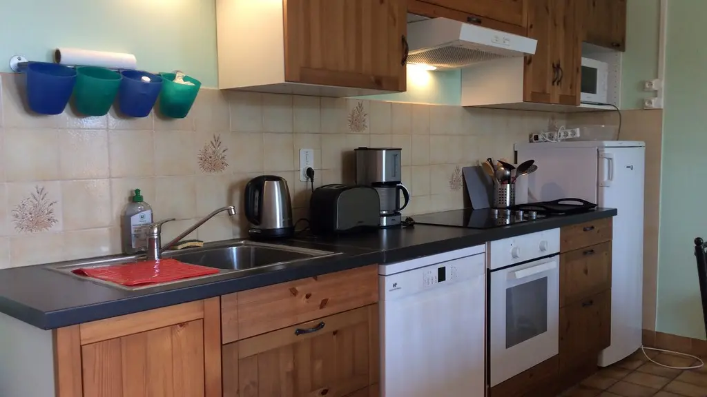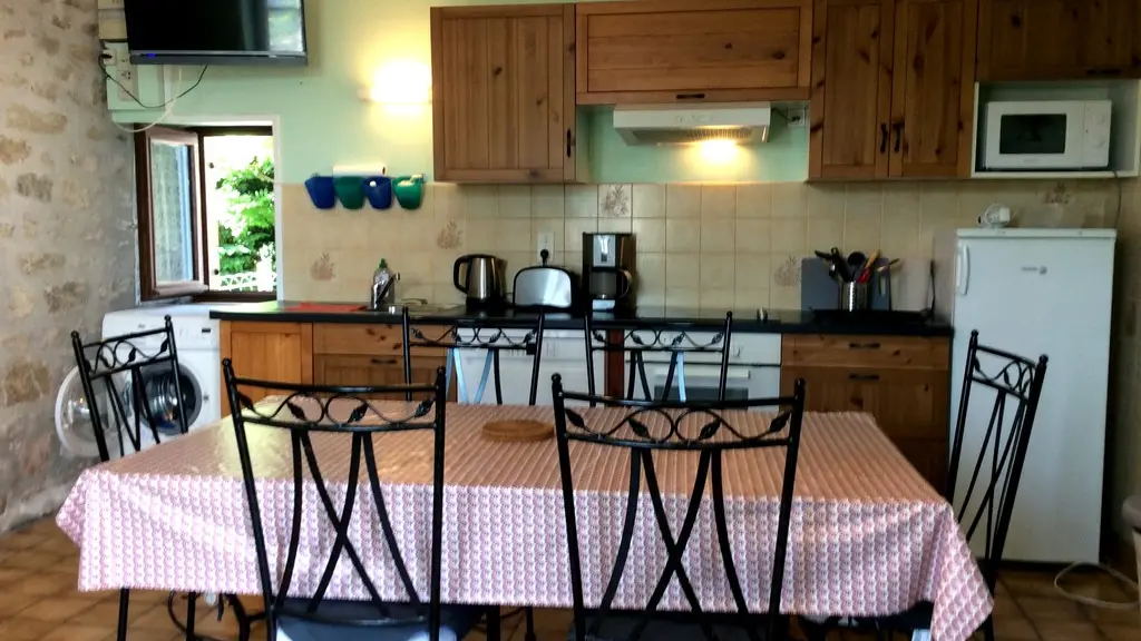 La Poste, located on the first floor, comprises an attractive living room (TV) and kitchen (dishwasher, oven, fridge, ceramic hob, etc.), 2 bedrooms (2 double beds), a shower room (shower, washing machine, tumble dryer) and a separate toilet. The shared courtyard is ideal for outdoor dining or lounging, while enjoying the beautiful view over Lac de Viam.