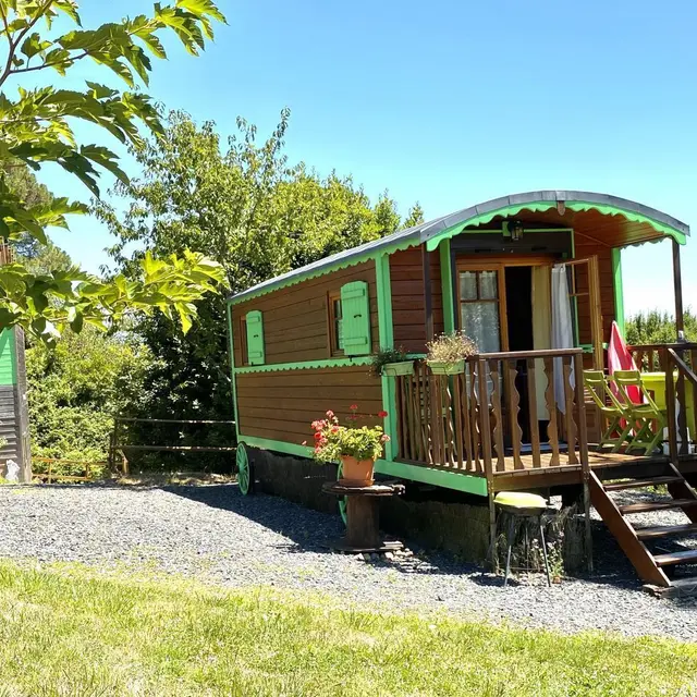 all-wood caravan, great comfort: fully-equipped kitchen and 2 90cm-wide sofa beds, corridor leading to shower room and toilet, bedroom with 160cm-wide bed, uninterrupted view over the countryside, peace and quiet guaranteed.swimming pool shared with Charlotte's gîte and the owners. Electric bikes with helmets and baby chairs are available for riding on our country roads! Close to Terrasson, Vézère valley, Lascaux caves, Sarlat, Périgueux, Brive, Pompadour, Collonges la Rouge, Rocamadour and the Gouffre de Padirac We border 3 départements: Corrèze, Dordogne, Lot Cows, horses, chickens, rabbits, dogs and cats - that's country life! Electric bikes available on site Boules pitch. Meals available on request: 26?/adult