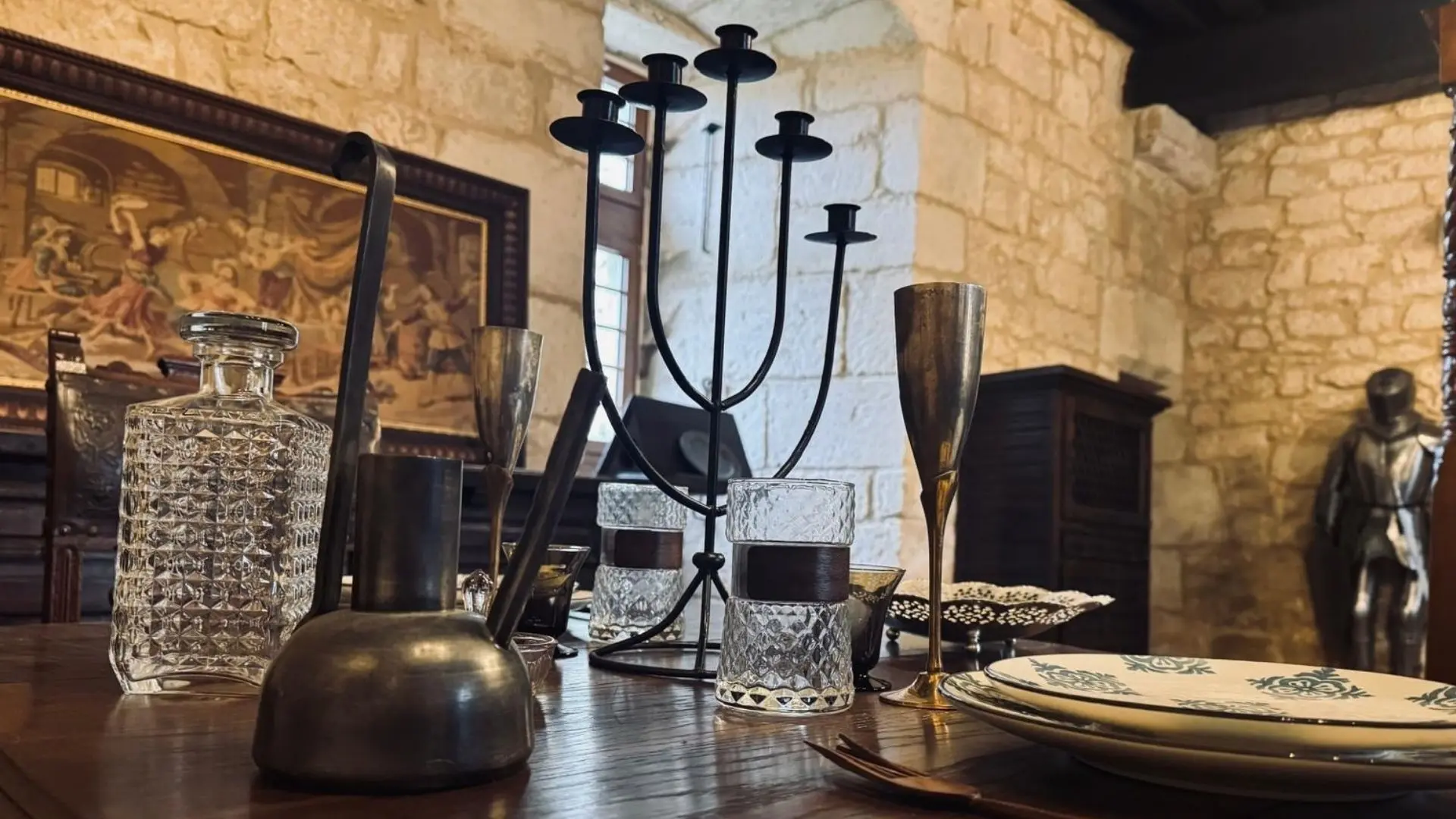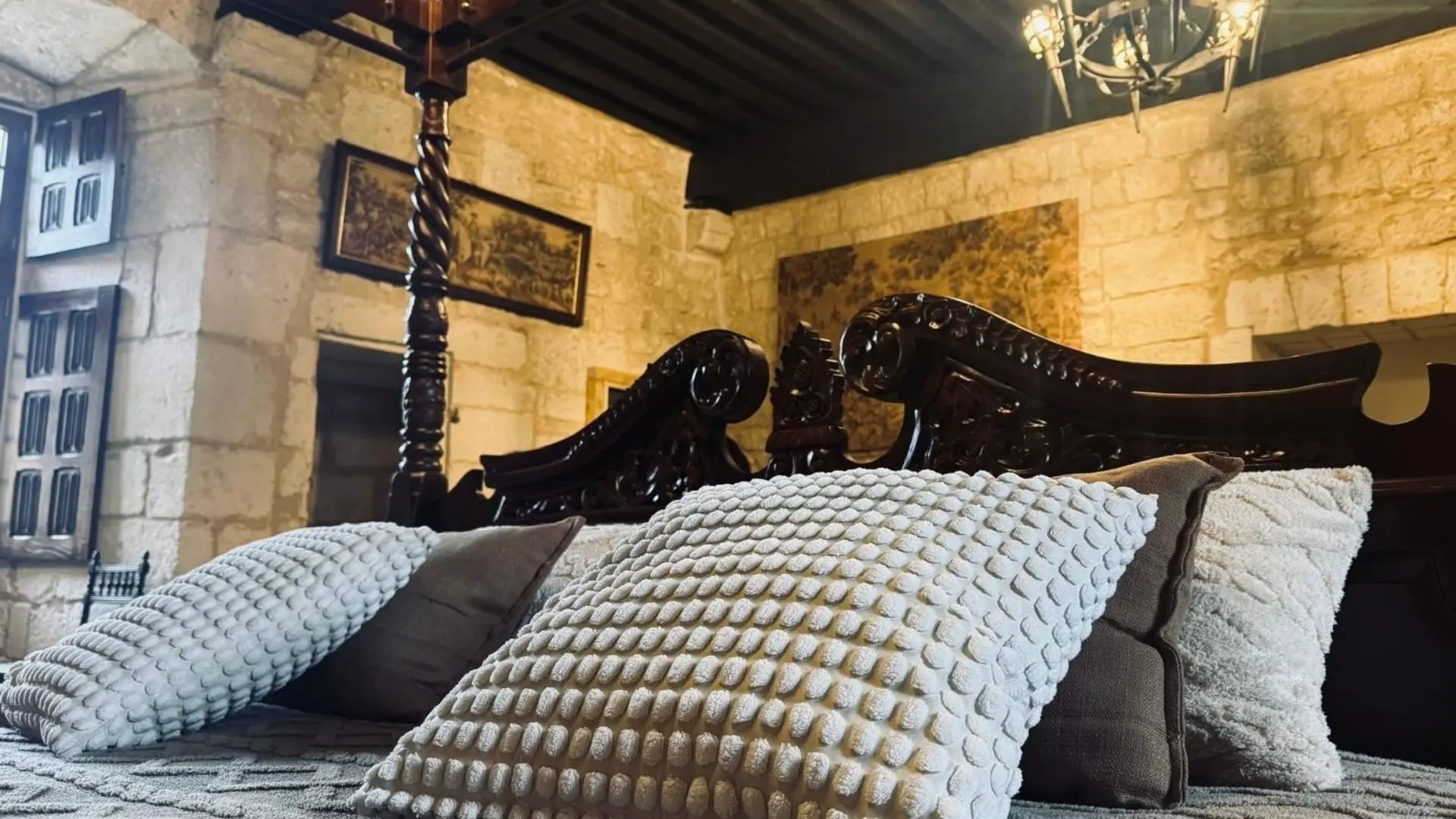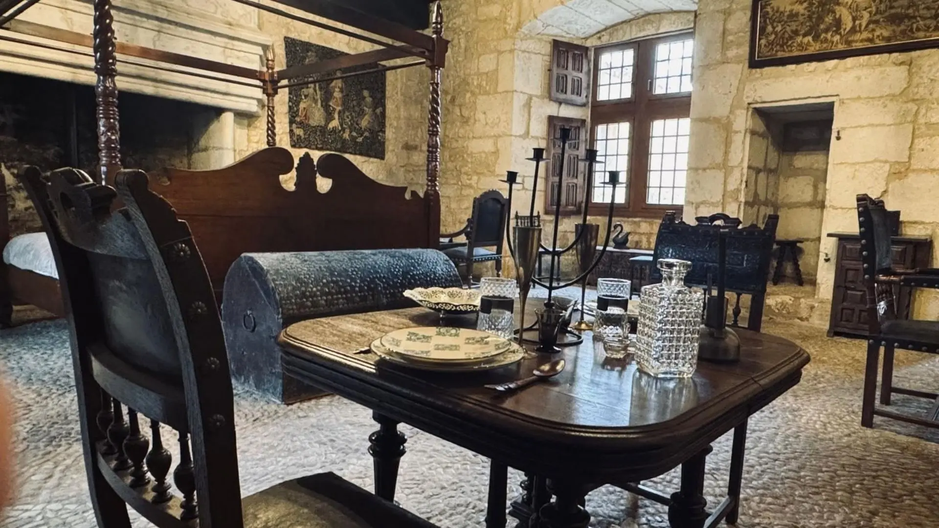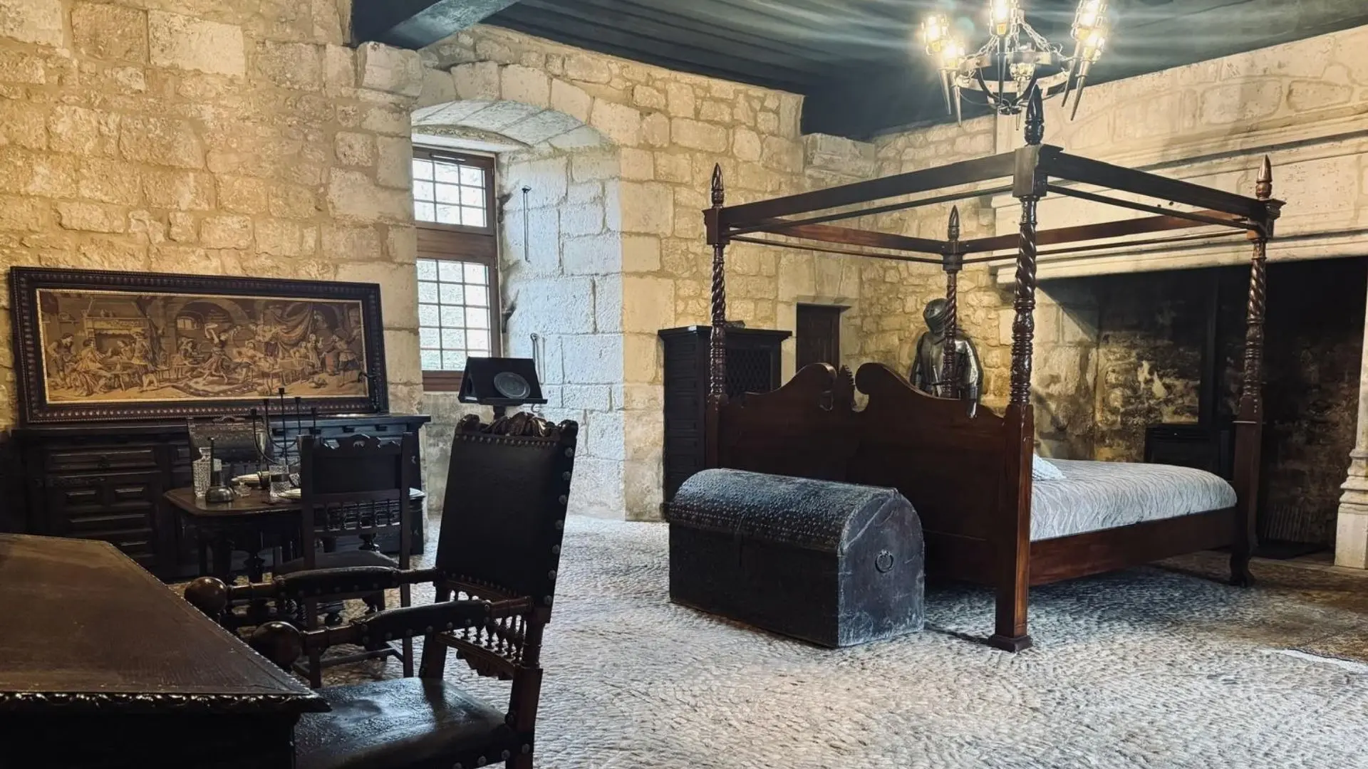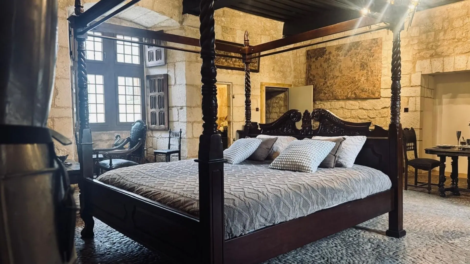 With its ancient vaults and exposed beams, this 2-person apartment immerses guests in the medieval world of the château. The Salle des Gardes evokes the nobility of the place and the atmosphere of bygone days, with its raw materials and warm hues.