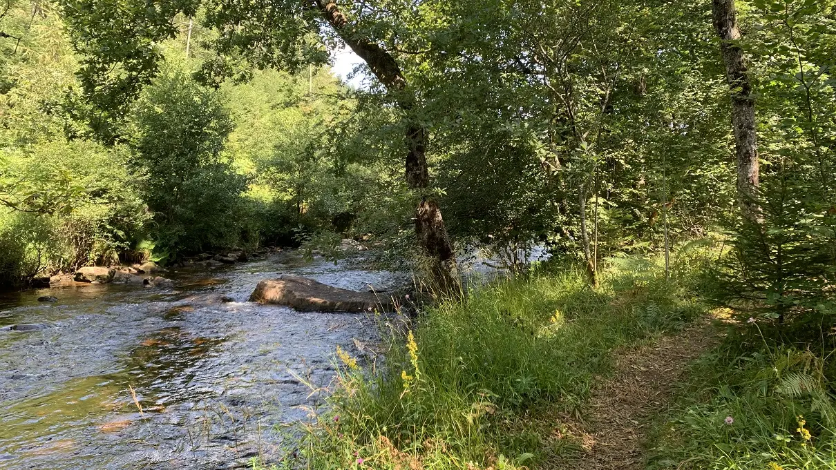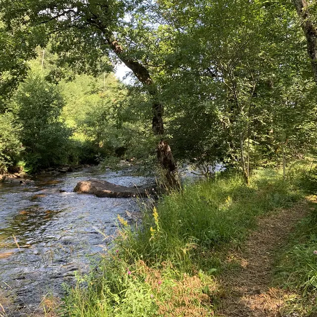 This circuit takes us along an emblematic river of the Massif Central, the Vézère. It rises in the heart of the Longeyroux peat bog and flows into the Dordogne. If the echo of the river is always present, this small fisherman's path offers a different atmosphere throughout the year: freshness of the undergrowth and blueberries in summer, colours of autumn, clear view on the river in winter, meeting with the fishermen in spring..
