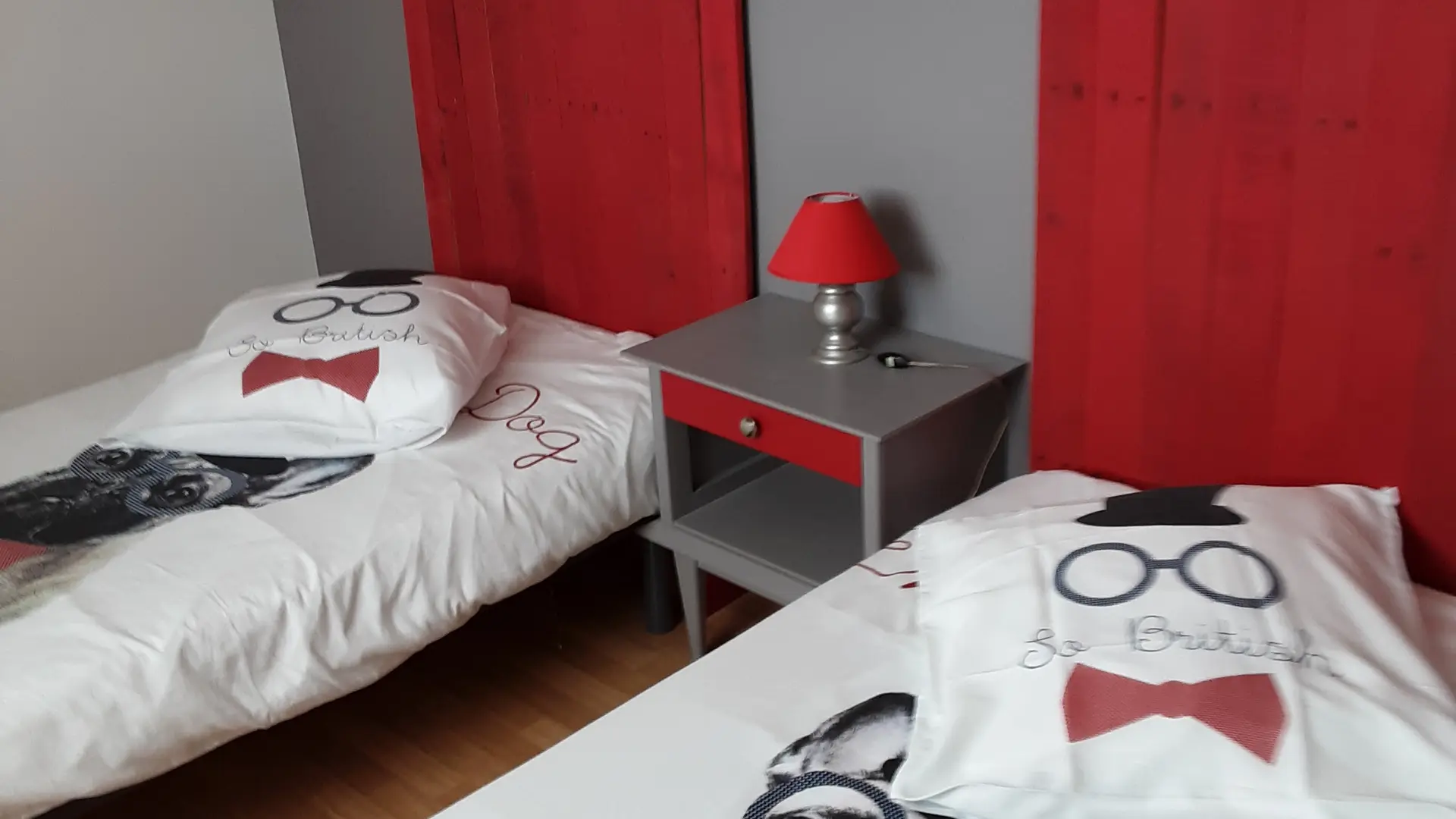 Upstairs: 3 bedrooms with 1 bed 140X190 ? comforter 220X240. 1 bedroom with 2 beds 90X190 ? 2 comforters 200X200.