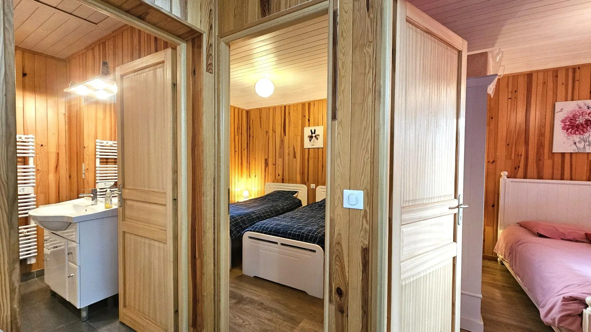 The "Chalet de Patou", combining comfort and modernity, is nestled in its 8-hectare green setting on the edge of a private shaded pond. It's the ideal place to come and fish or simply relax and forget your everyday worries for a while. Quietly located, but close to shops, you're 5km from Pompadour, the city of horses, and 7km from Ségur le Château, listed as one of France's most beautiful villages, in the verdant Corrèze region, rich in heritage, gastronomy and tasty fruit: apples, raspberries, chestnuts, walnuts, depending on the season...