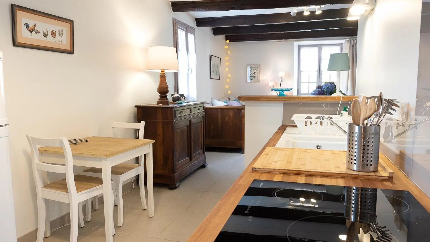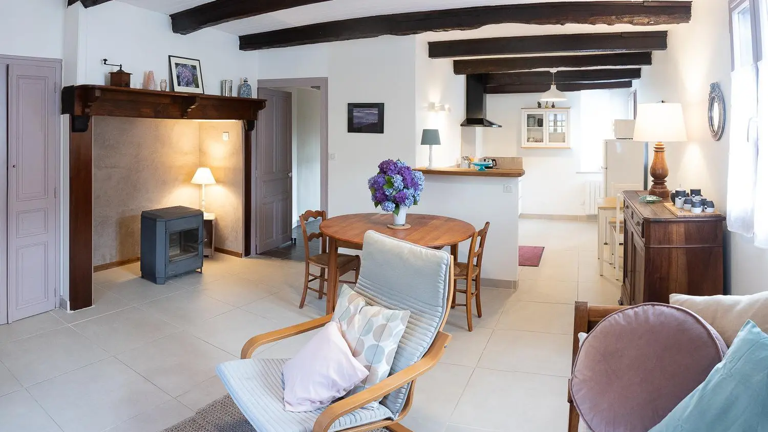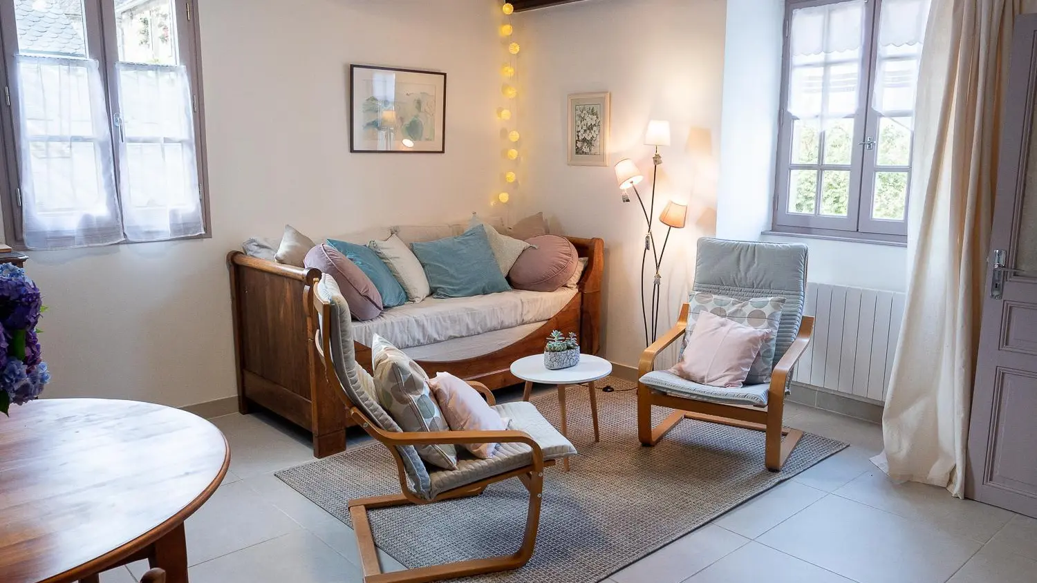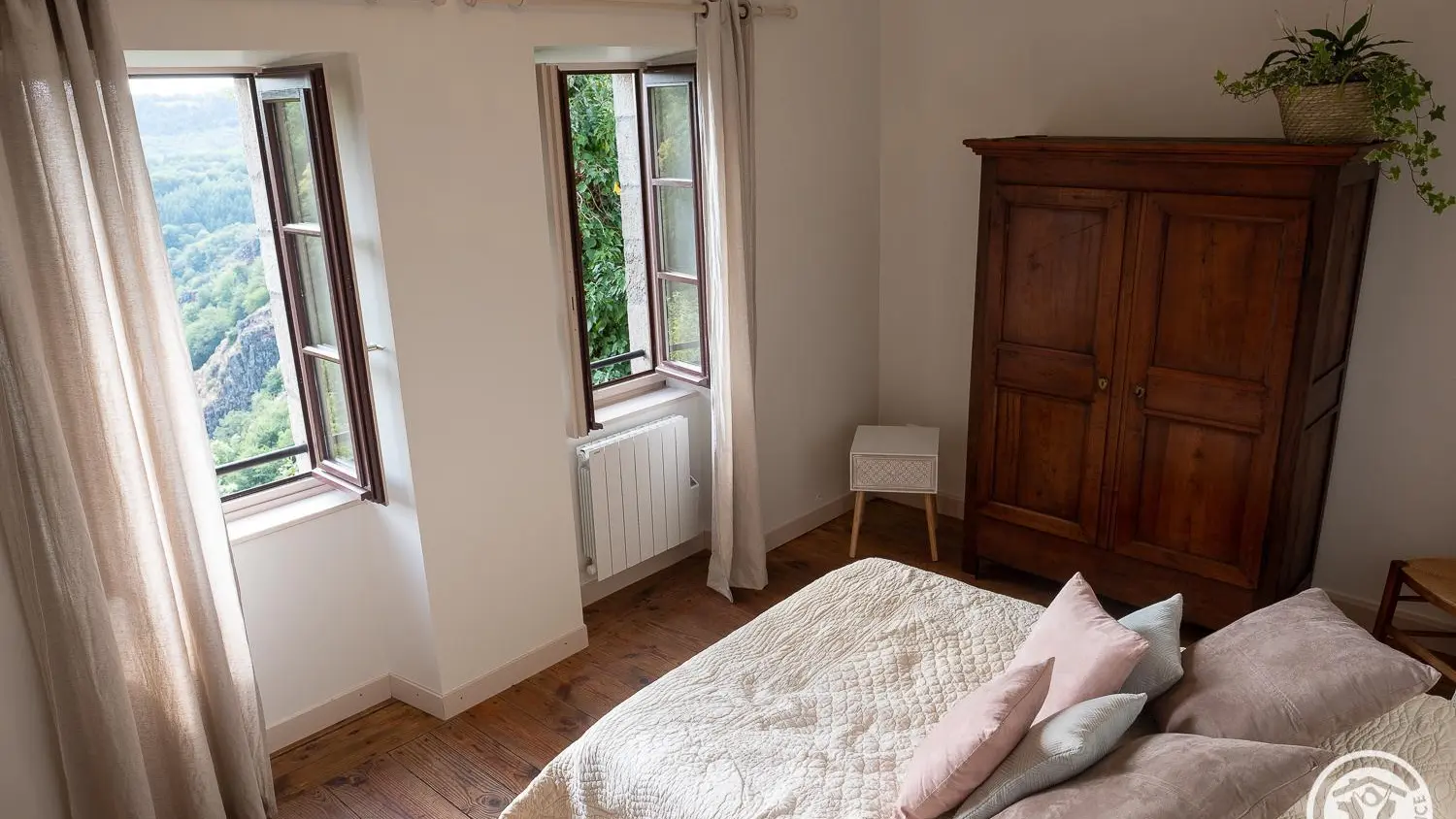 Recharge your batteries at Yves and Margaux's home, in the heart of a picturesque village lulled by the sound of three waterfalls cascading at its feet. From the bedroom and terrace overlooking the valley (outside access), you can admire the sunsets in all seasons. In winter, a wood-burning stove and all the comforts of home will make your stay comforting and cosy. A range of services (wellness massage, sonotherapy, etc.), catering (delivery possible) and a boutique are available at the adjoining Harmonie du Monde center, run by the owners. Gimel, France's first listed site, offers an exceptional natural setting in a Natura 2000 zone. Numerous bathing sites, unspoilt wilderness, a real paradise for hikers of all levels starting from the village. Located just 12 km from Tulle, you'll have access to a rich cultural offering and t ...