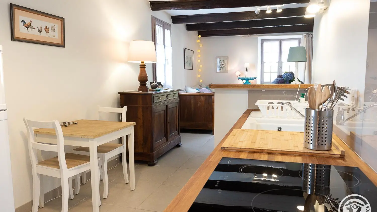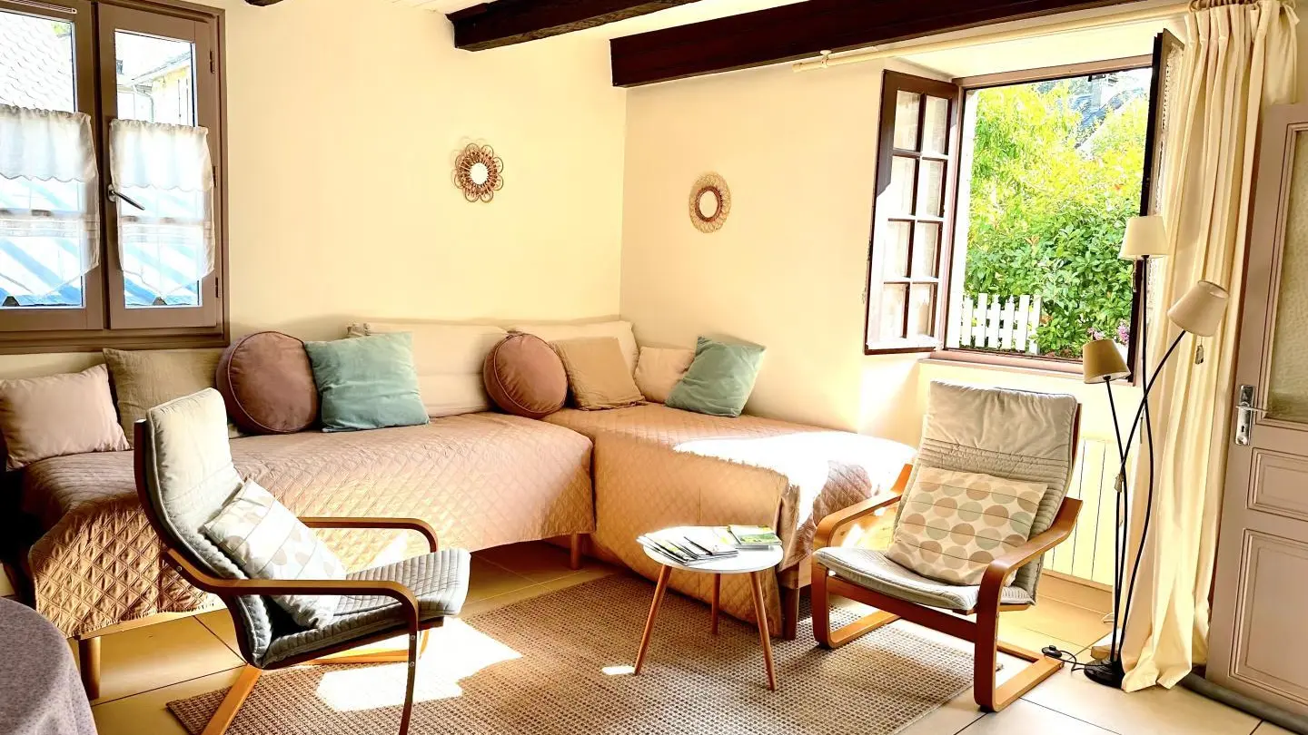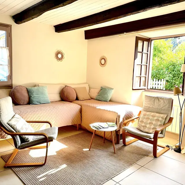 Recharge your batteries at Yves and Margaux's home, in the heart of a picturesque village lulled by the sound of three waterfalls cascading at its feet. From the bedroom and terrace overlooking the valley (outside access), you can admire the sunsets in all seasons. In winter, a wood-burning stove and all the comforts of home will make your stay comforting and cosy. A range of services (wellness massage, sonotherapy, etc.), catering (delivery possible) and a boutique are available at the adjoining Harmonie du Monde center, run by the owners. Gimel, France's first listed site, offers an exceptional natural setting in a Natura 2000 zone. Numerous bathing sites, unspoilt wilderness, a real paradise for hikers of all levels starting from the village. Located just 12 km from Tulle, you'll have access to a rich cultural offering and t ...
