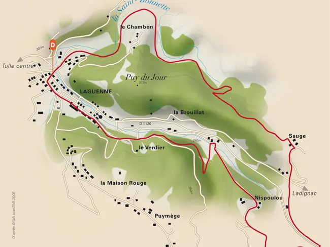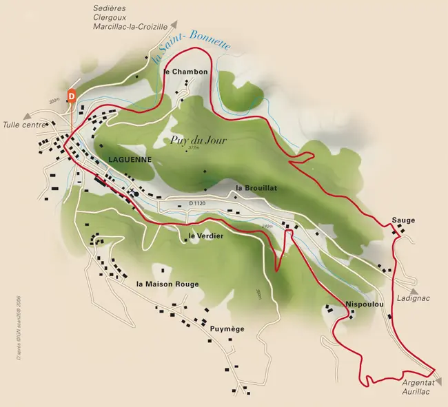 Following the old Paris Orléans Corrèze route, this circuit goes around the Puy du Jour, along the Saint-Bonnette and Ganette rivers, to finish in the village, rue des Armuriers, where the famous "Taou" of Laguenne used to sound.