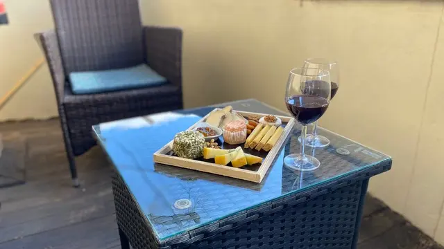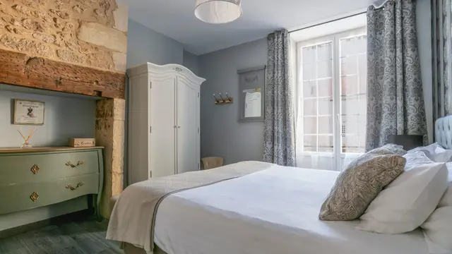 (bed 180x200) with bathroom (shower). In addition to the bedroom, a single bed in the living room. Balcony overlooking the Vézère river and Lascaux hill (Lascaux IV 1.5km away). Quiet, historic neighborhood