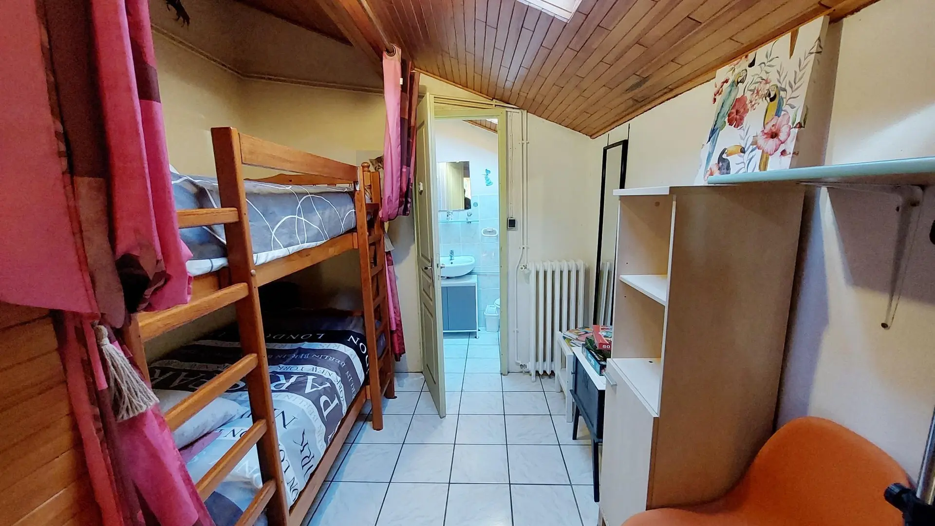 - a children's bedroom, in a row with 2 bunk beds (90) with the bathroom with shower and WC just behind