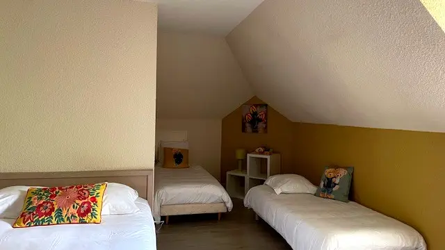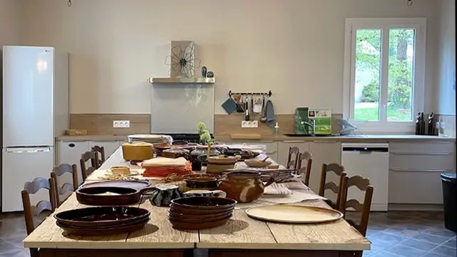 A new lease of life for this former hotel converted into a large-capacity gîte. Located 15 minutes from the market towns of Egletons and Ussel, the gîte lies at the heart of the PNR Millevaches en Limousin, between lakes and forests, castles and thatched cottages. Capped by a beautiful slate roof and protected by thick granite walls, Clos du Châtel opens onto a generously proportioned living room (wifi, TV) and a well-equipped kitchen/dining room for large tables (cooking piano, dishwasher, ovens, fridge-freezer). 19 comfortable bedrooms, each with its own shower room/WC, are spread over 3 levels (10 beds 160, 9 beds 140, 5 beds 90). One room on the garden level can accommodate a person with reduced mobility. It's the perfect opportunity for large families and groups of friends to get together for intense, festive moments in a pleasant, functional environment.