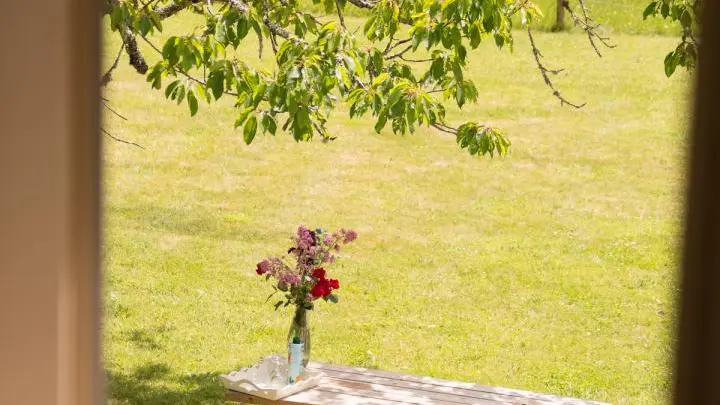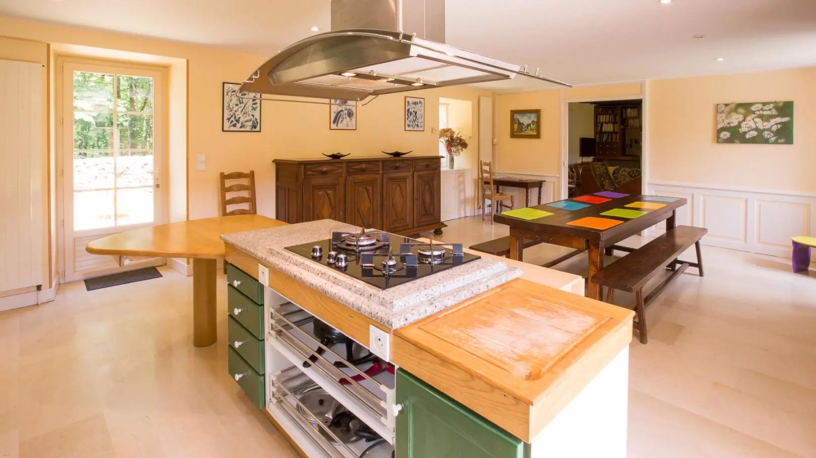 Gîte Le fournicou, located 1 km from the village of Estivals, is a fully restored farmhouse set in the countryside, on the edge of a wood opposite a large, open clearing. It can accommodate up to 12 adults and 3 children.