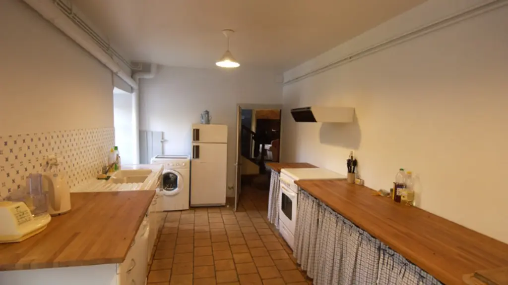 The ground floor consists of a dining room with a grand piano, television, hi-fi system and DVD player, a separate kitchen with all the necessary appliances, a WC and a large room with a cobbled floor that doubles as a living room, with a sofa bed and an inglenook fireplace, a kitchen garden (openwork stone used to heat dishes) and an imposing vaulted cellar (where produce was kept cool).