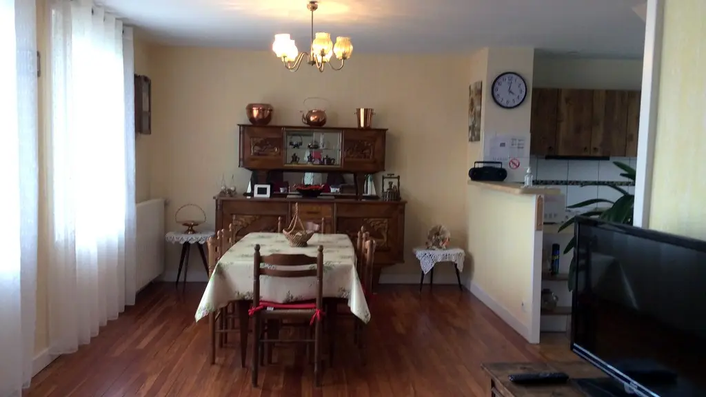 This large house is located in the hamlet of Chaudergue at 3 kilometers from Ussel, a small town in Haute-Corrèze. The living room is composed of a well equipped kitchen (dishwasher, washing machine, ovens, hood, fridge) open on a dining-living room (TV); three bright bedrooms (2 beds 140, 1 bed 90, 1 baby bed) will welcome you warmly. The shower room and the toilet are independent. The whole is completed with a closed garage, a large enclosed garden equipped with a barbecue, garden furniture and swings.