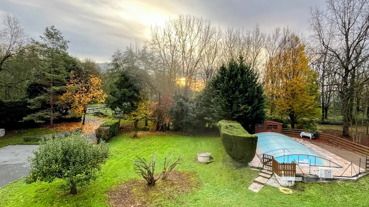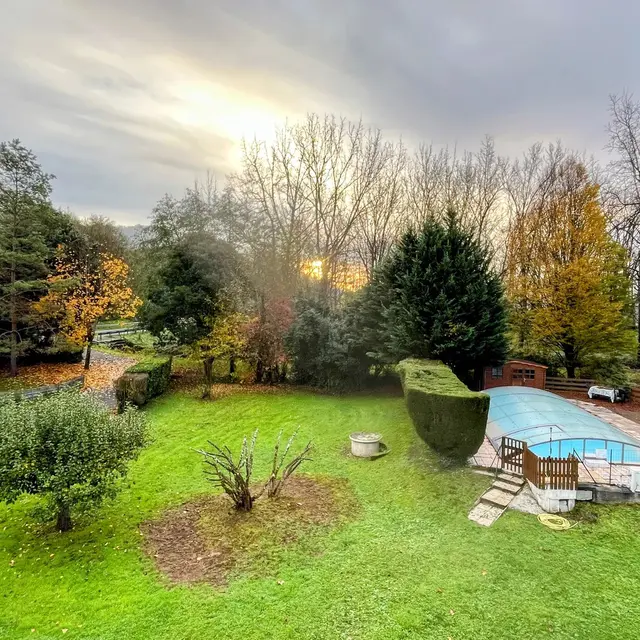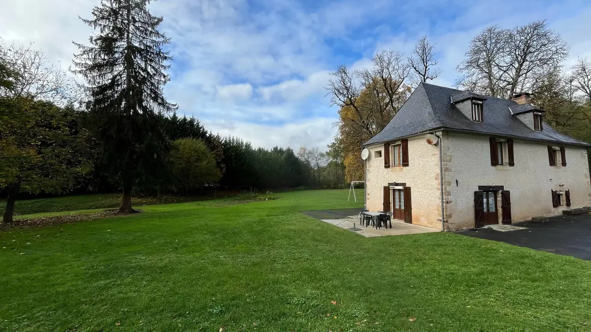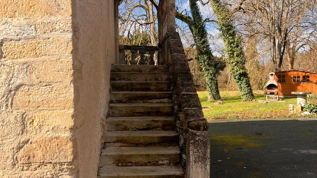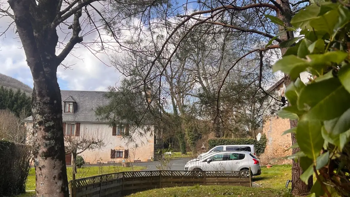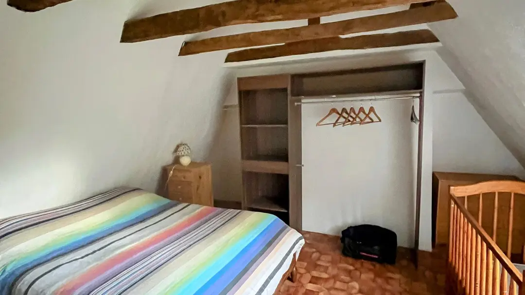 At the edge of the woods, on the first floor of a beautiful Périgord house with stone staircase and covered entrance porch, independent accommodation with kitchen/living room, lounge with sofa and two armchairs, comfortable sofa bed. Two bedrooms, one with a double bed (140cm) and a cot, and one with a double bed (160cm), bathroom with shower and bath, two WCs, large wooded garden of half a hectare with ample parking. Linen provided except for cot. Numerous activities on site and restaurant 100m away.