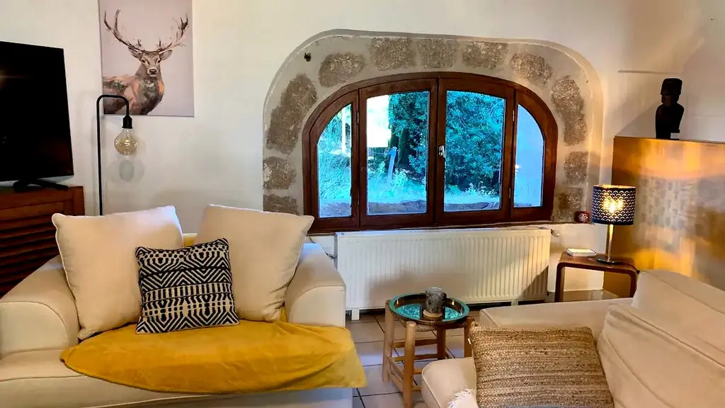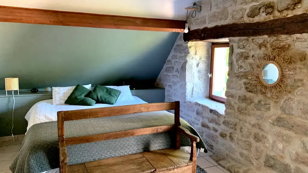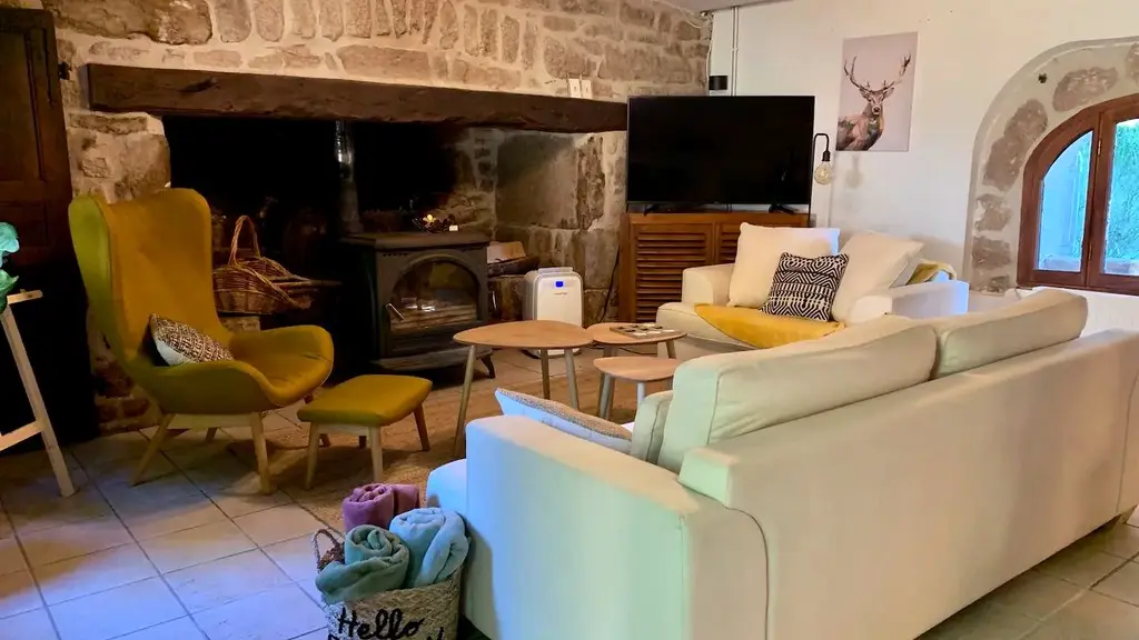 On the site of a former Templar priory in the heart of the Millevaches Regional Nature Park, Stéphanie welcomes you to this beautifully renovated house, typical of the plateau's architecture. Beautiful proportions, granite walls, a slate roof and striking features such as this exceptional well characterise the place. You enter a large living room heated in winter by a wood-burning stove: the relaxation area is cosy and the open-plan kitchen is functional. The beautiful stone staircase leads to a reading or games corner, three bedrooms and a shower room/WC. The whole place is elegant, comfortable and has everything you need.