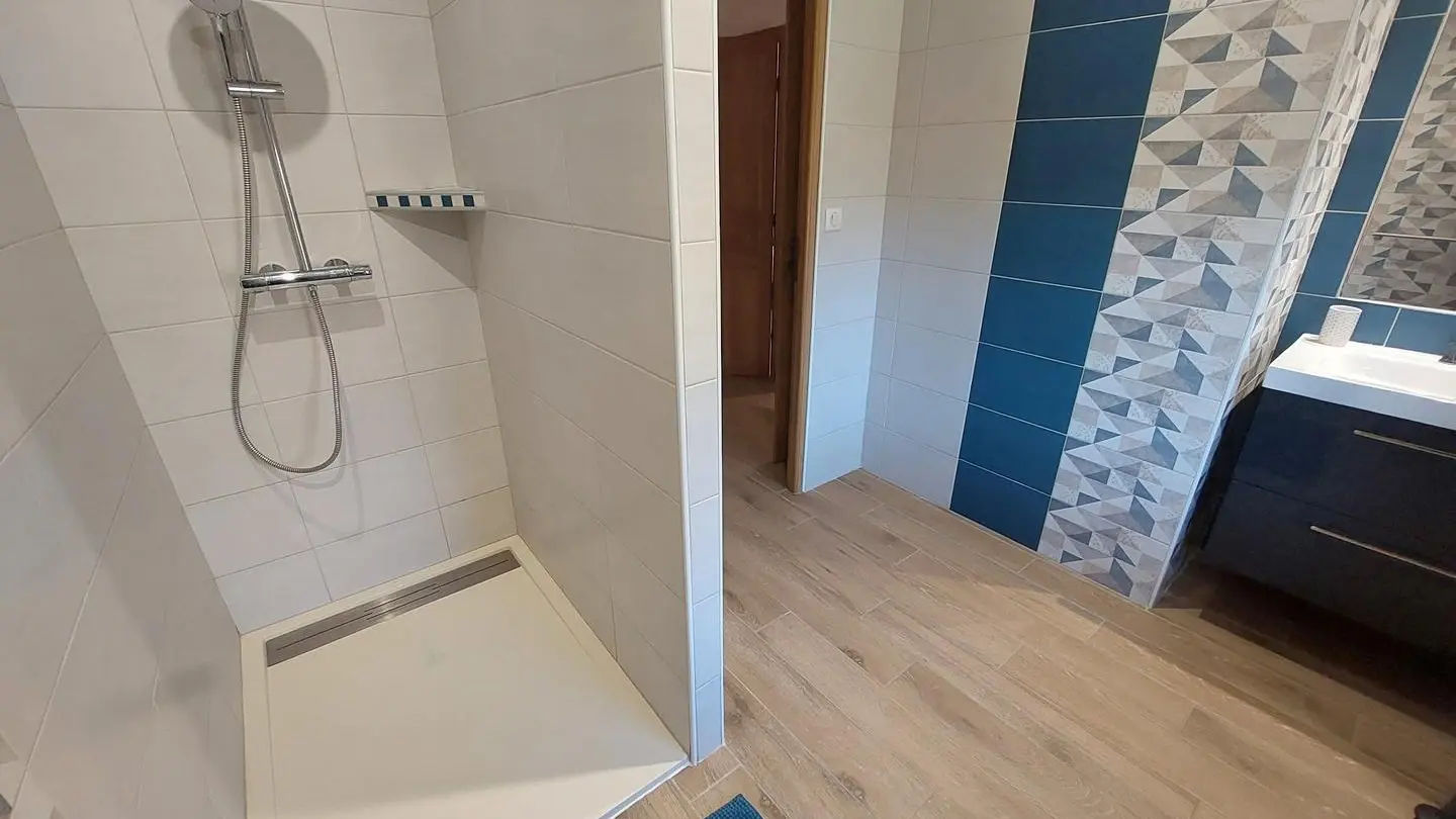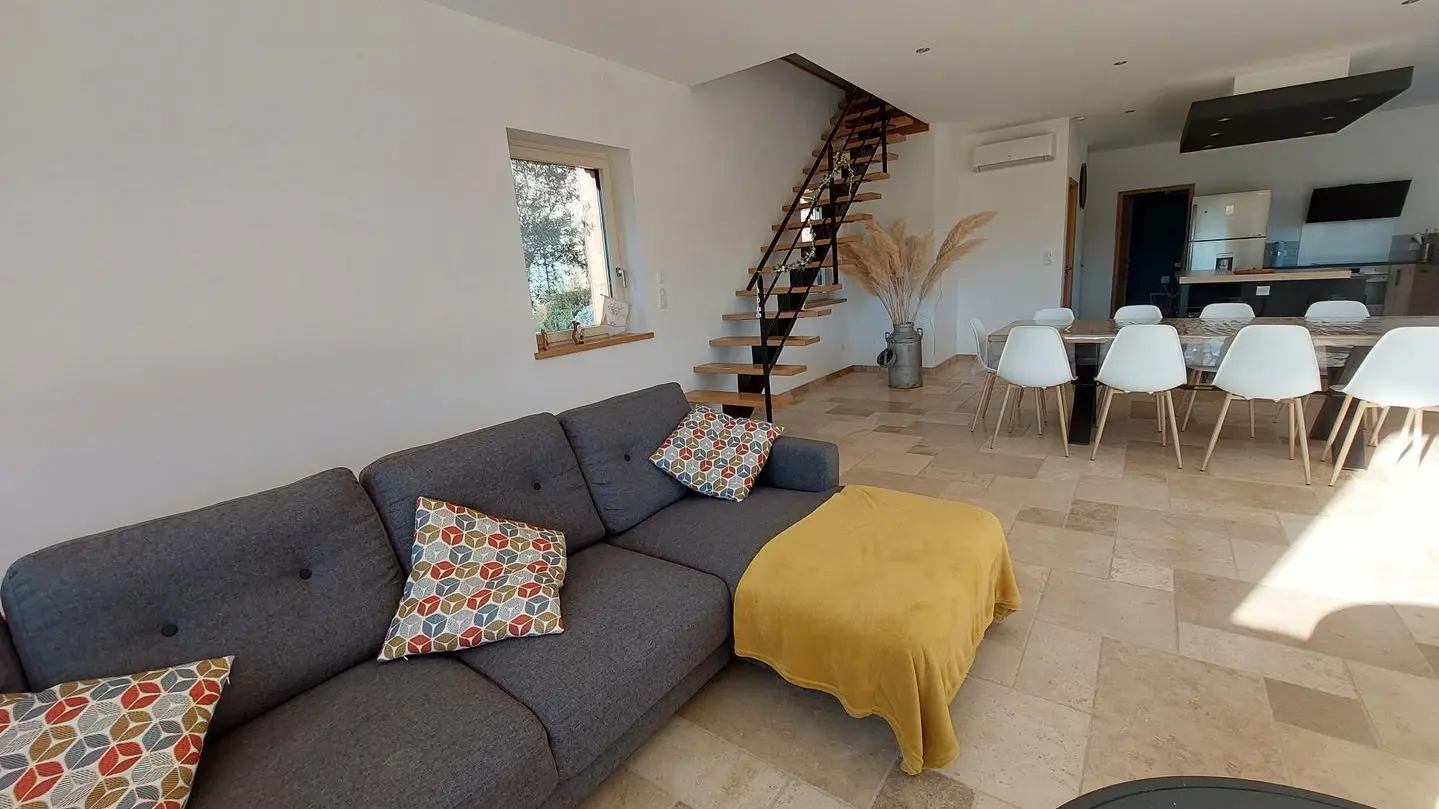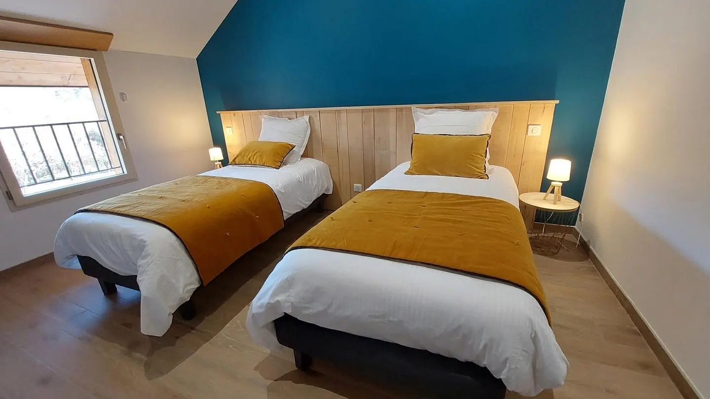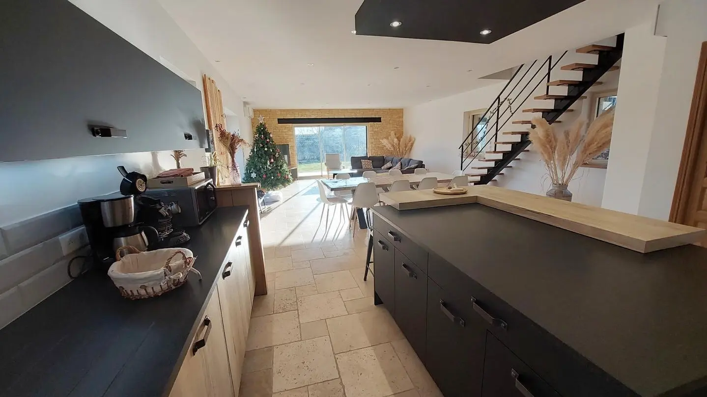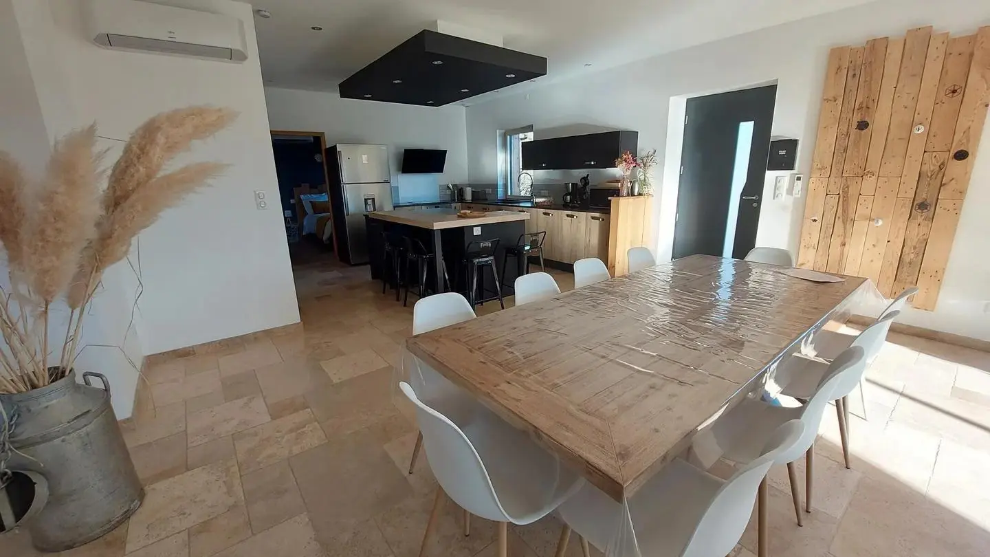 5 bedrooms ( 4 beds 160 and 2 beds 90) - 2 bathrooms - 1 open kitchen - 1 large living room.