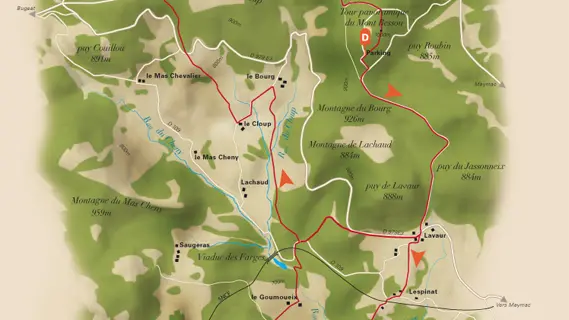 Starting point Mont-Bessou, 20 km circuit and 18 km variant, yellow markings. If it is a strong point of the circuit, the road of the beeches constitutes a long tarred portion.