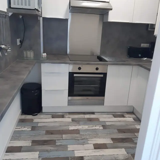 Kitchen with microwave, fridge, freezer, dishwasher, ceramic hob, oven, coffee maker, toaster, vacuum cleaner, washing machine. Living room with TV, sofa. Two bedrooms with double beds, comforter 200X200, pillows 60X60. One bedroom with 2 single beds, comforter 90X200. Bathroom with shower. Separate WC.