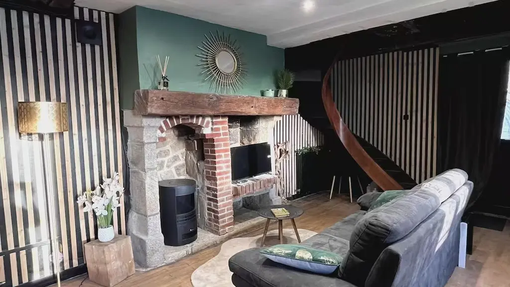 Decorated in soft shades of blue and green, this love room in Haute-Corrèze, just a few kilometers from the Puy de Dôme and Creuse regions, offers a glimpse of absolute well-being.