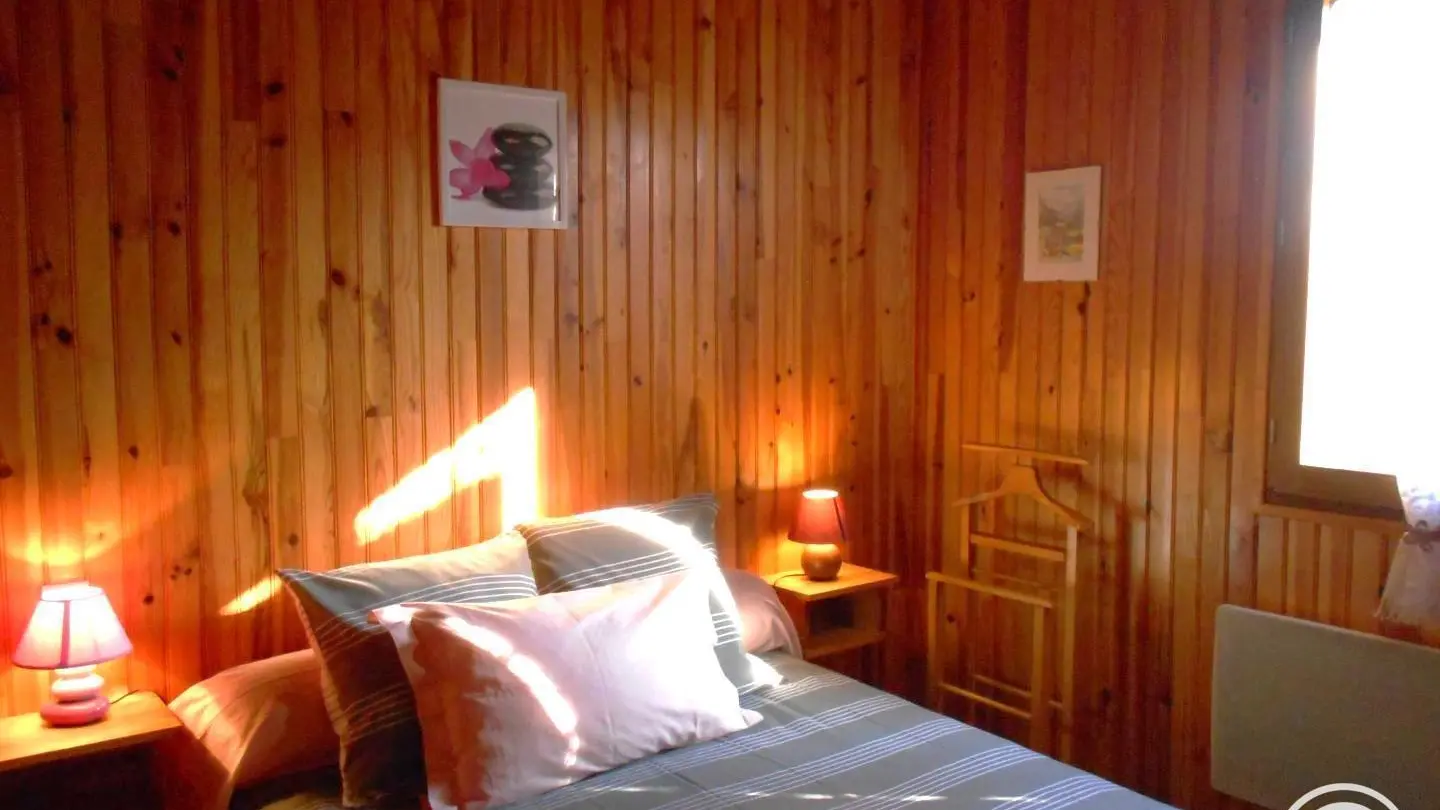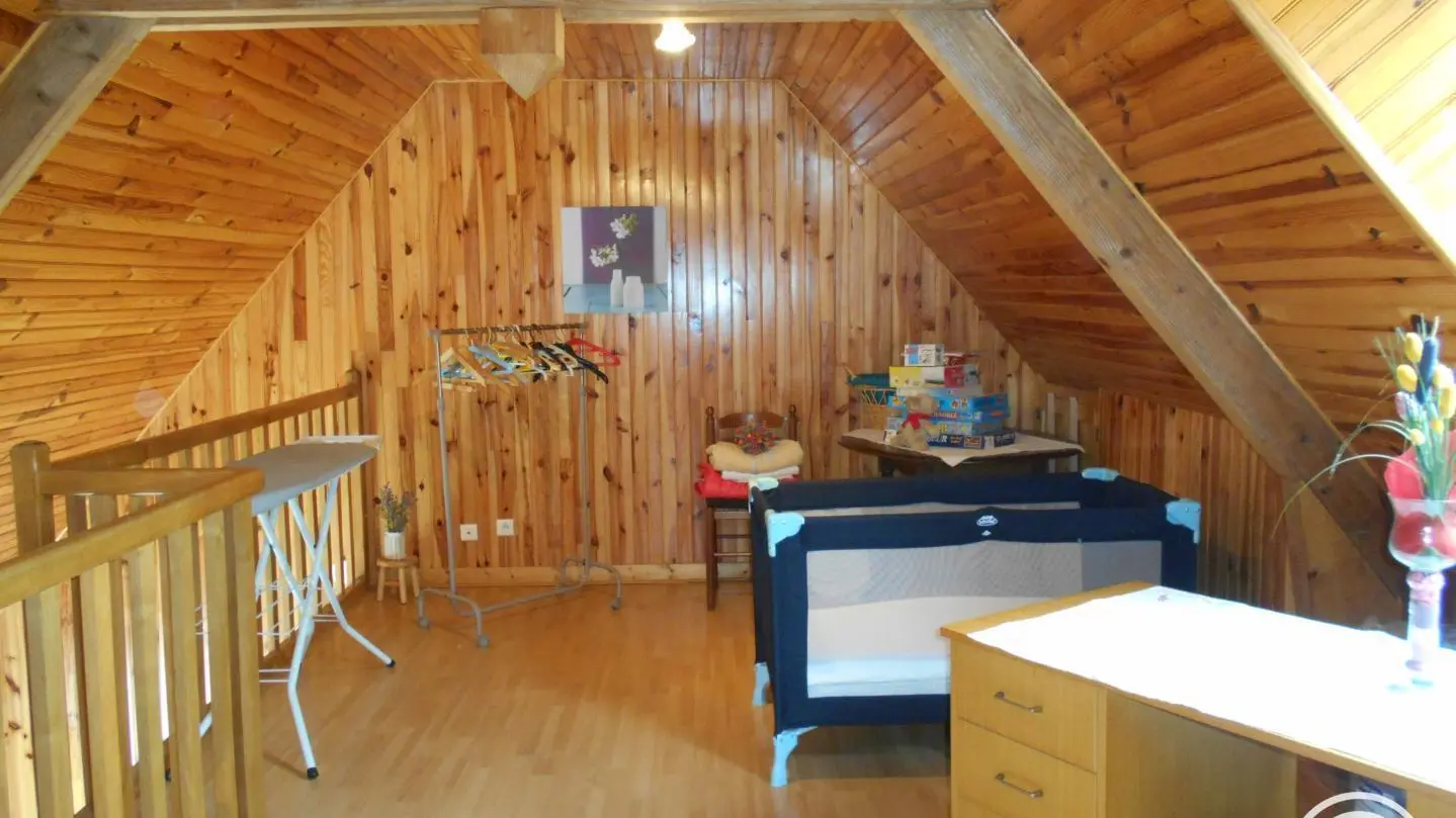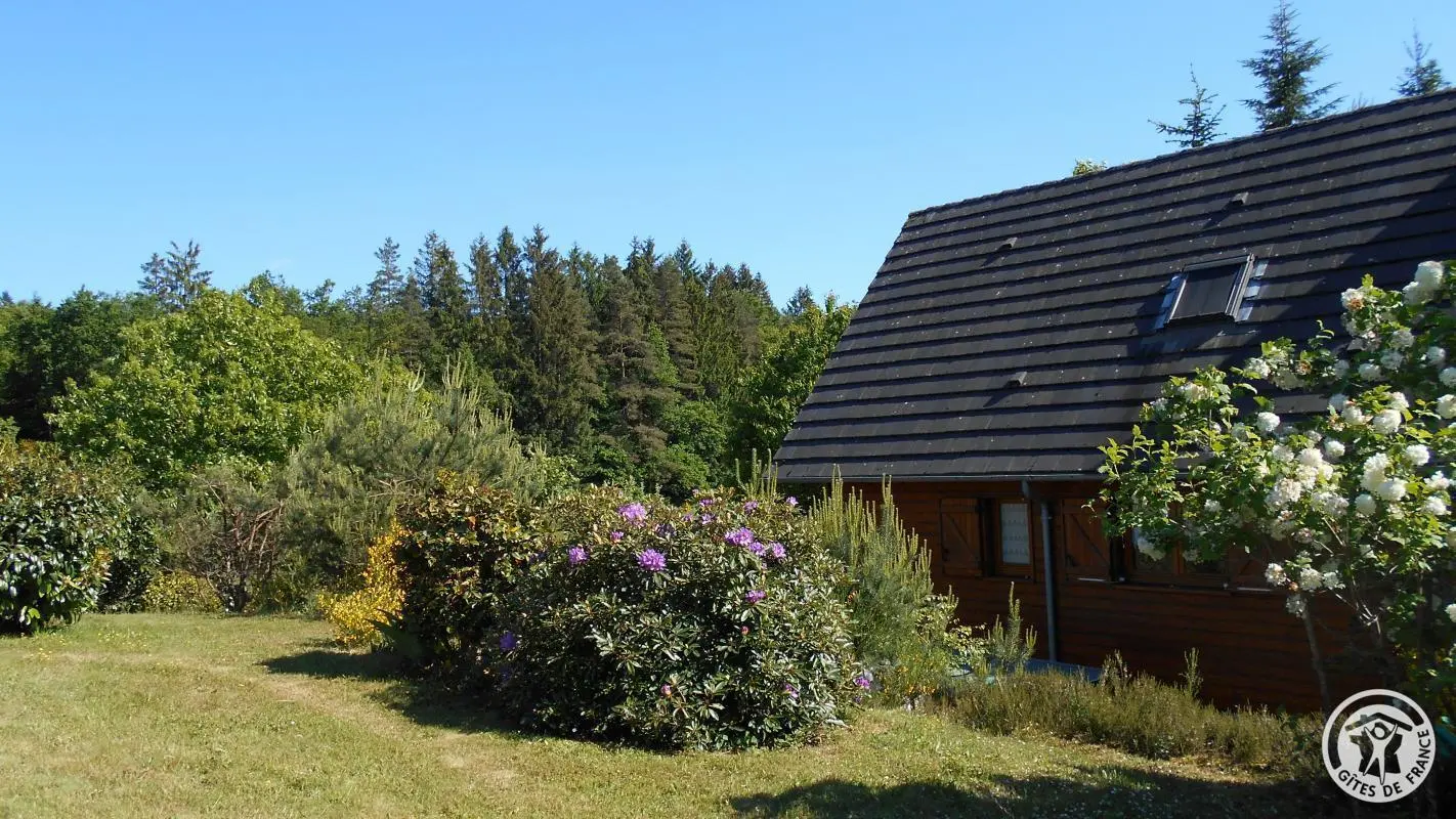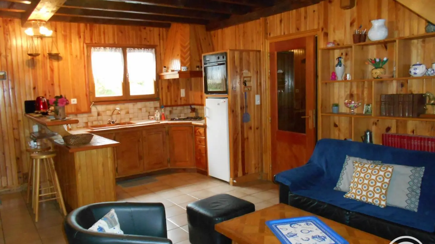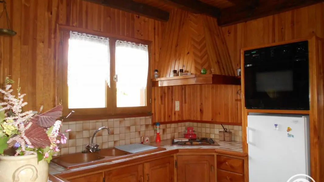 Detached wood and granite chalet on a large wooded plot in a quiet hamlet in the heart of the Pays Vert region, between the Massif des Monédières and the Dordogne Valley. Ideally located for discovering the heritage of the Correze region and taking a break. Living room with kitchenette and fireplace (wood-burning stove, wood on request, payable locally). Ground floor: 1 bedroom (1 x 140cm bed), shower room & separate wc. Upstairs: 1 bedroom (1 bed 140 + 1 bed 90), mezzanine (cot - desk - ironing). Electric heating. Freezer... Open for stays of 4 days minimum all year round. Shops 7 km away. Altitude 580 m