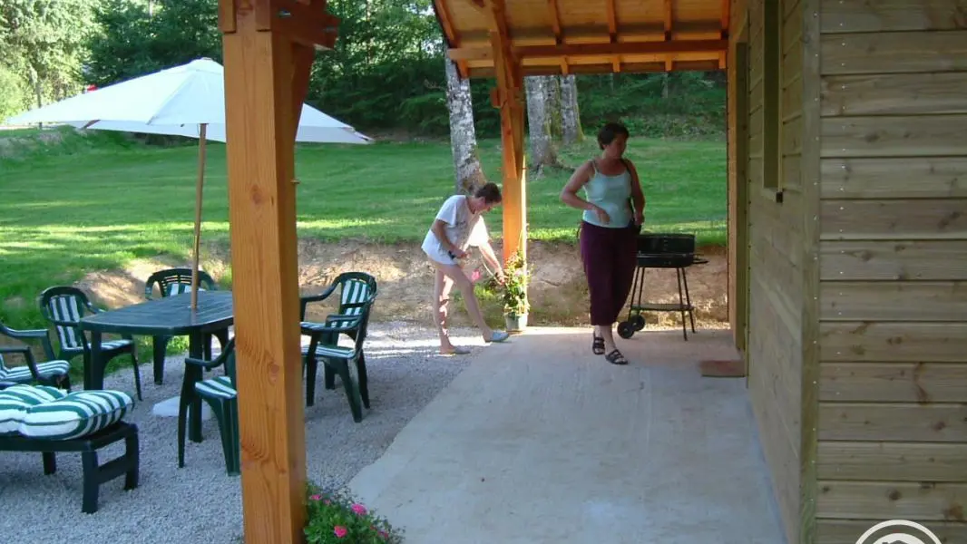 Les chalets du bord du Lac welcome you to an exceptional site, on the banks of the Lac de la Triouzoune, in NEUVIC, near Haute-Corrèze. The fully-equipped 60m² chalets with covered terraces are set in an enclosed area of one hectare planted with trees. You have direct access to the water. There's a pontoon for fishing and a beach for swimming.
