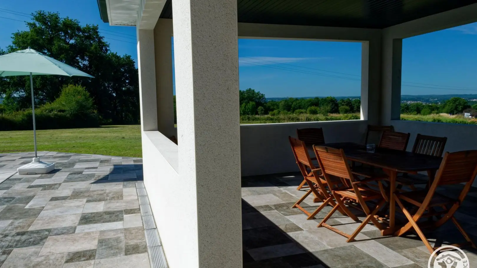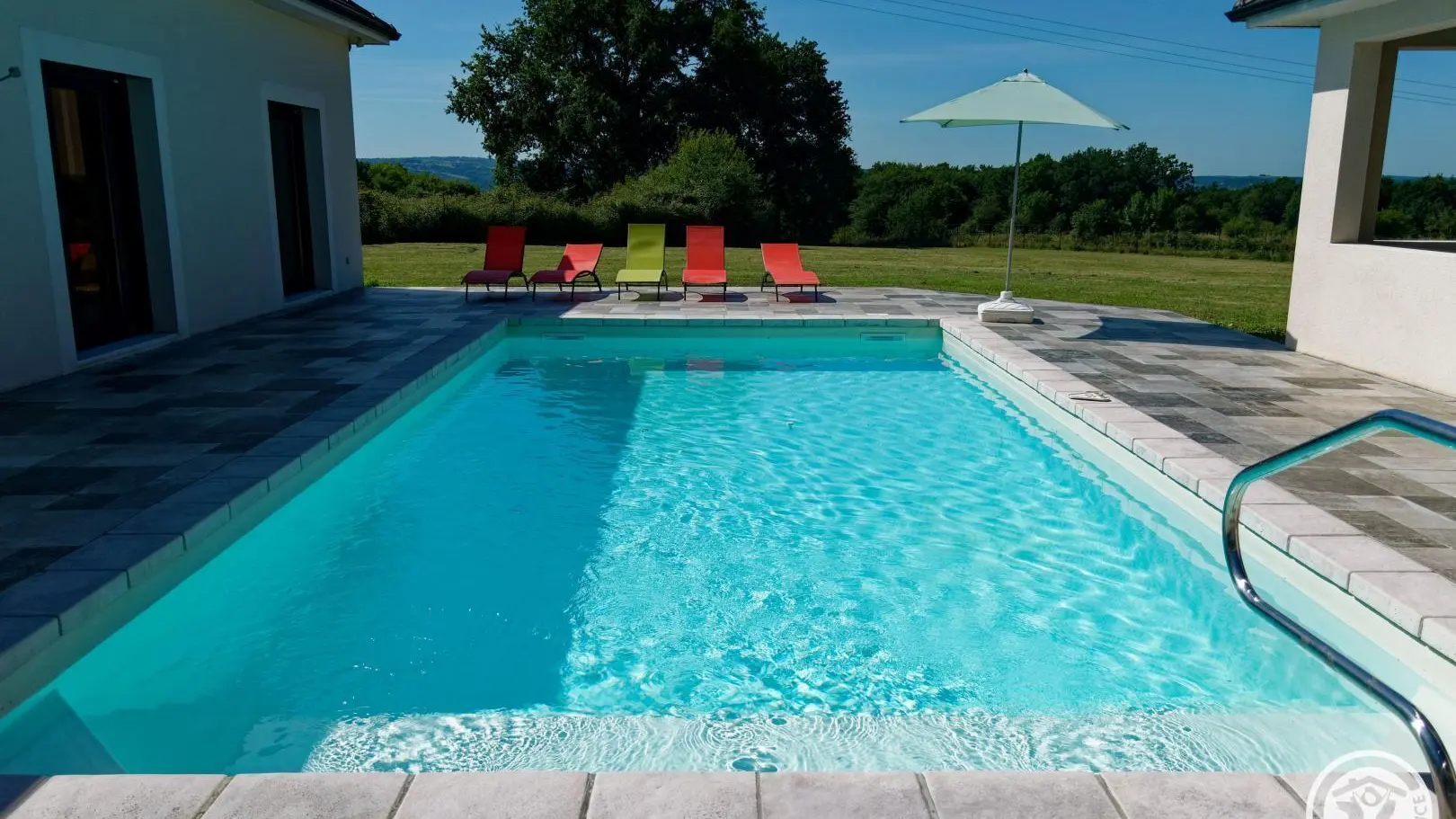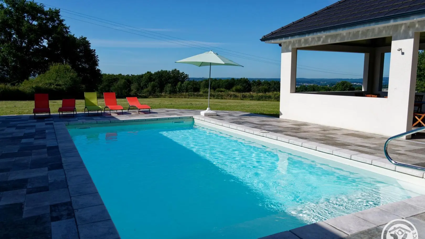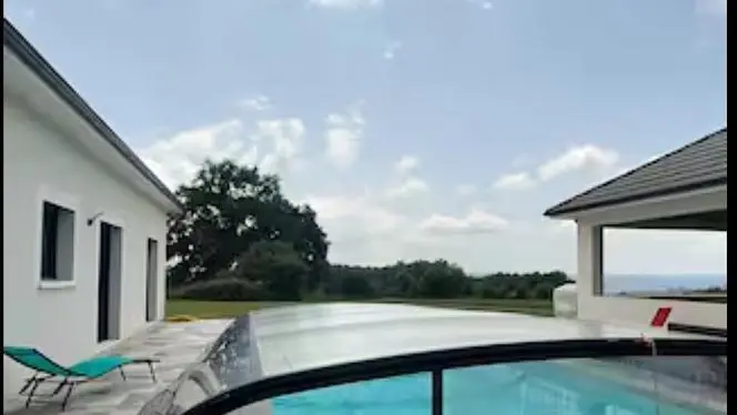 Contemporary villa featuring a large, fully-equipped kitchen opening onto the living-dining room. It features three bedrooms with dressing rooms, a master suite with two toilets and a large bathroom with bath and shower. Take advantage of the outdoor pool, two covered terraces and verdant parkland. A modern residence on the heights of Brive with all amenities and a superb view over the Gaillarde valley.