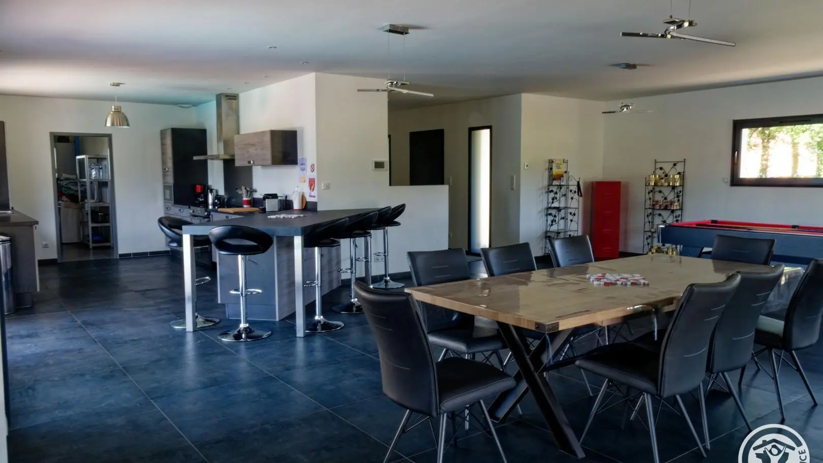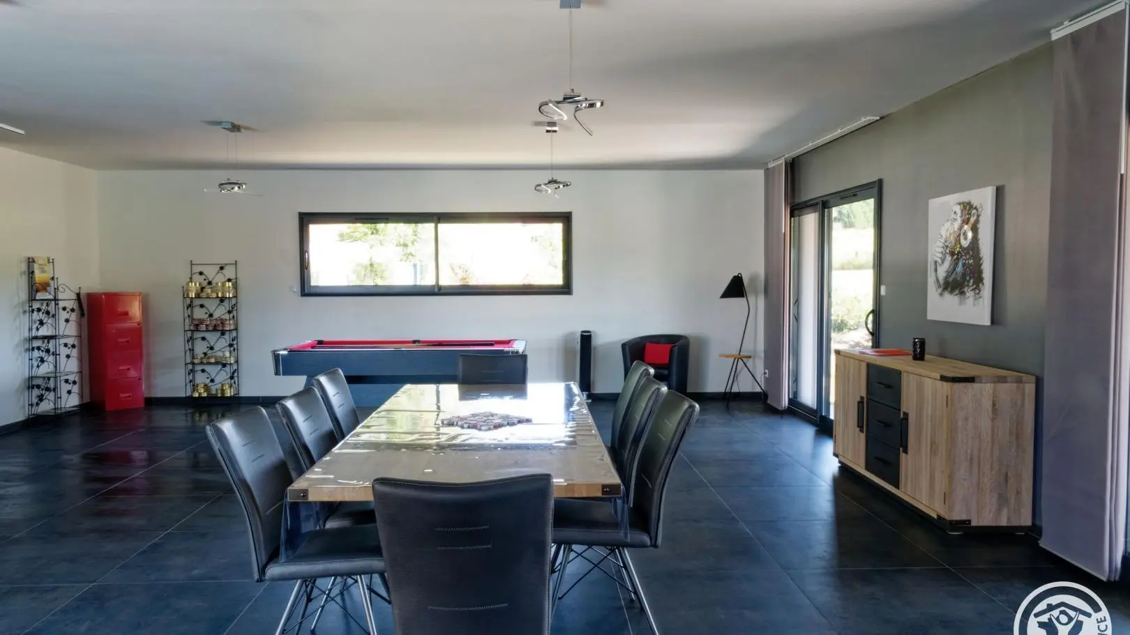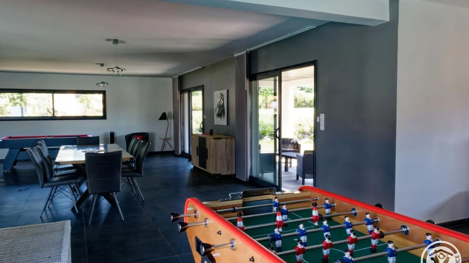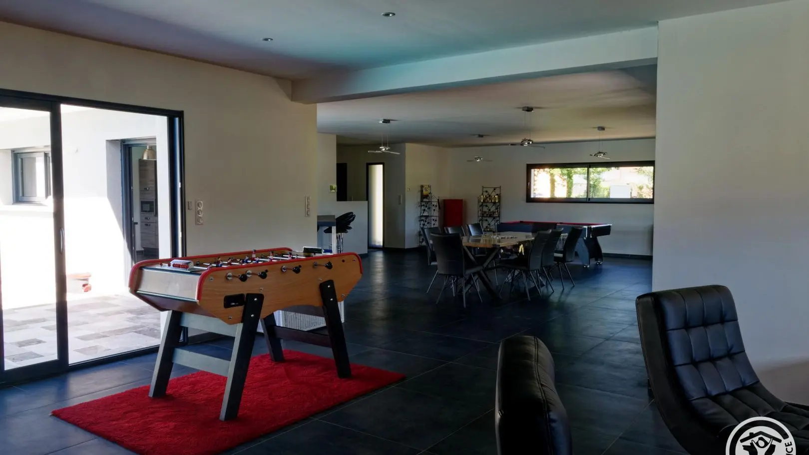 Contemporary villa featuring a large, fully-equipped kitchen opening onto the living-dining room. It features three bedrooms with dressing rooms, a master suite with two toilets and a large bathroom with bath and shower. Take advantage of the outdoor pool, two covered terraces and verdant parkland. A modern residence on the heights of Brive with all amenities and a superb view over the Gaillarde valley.