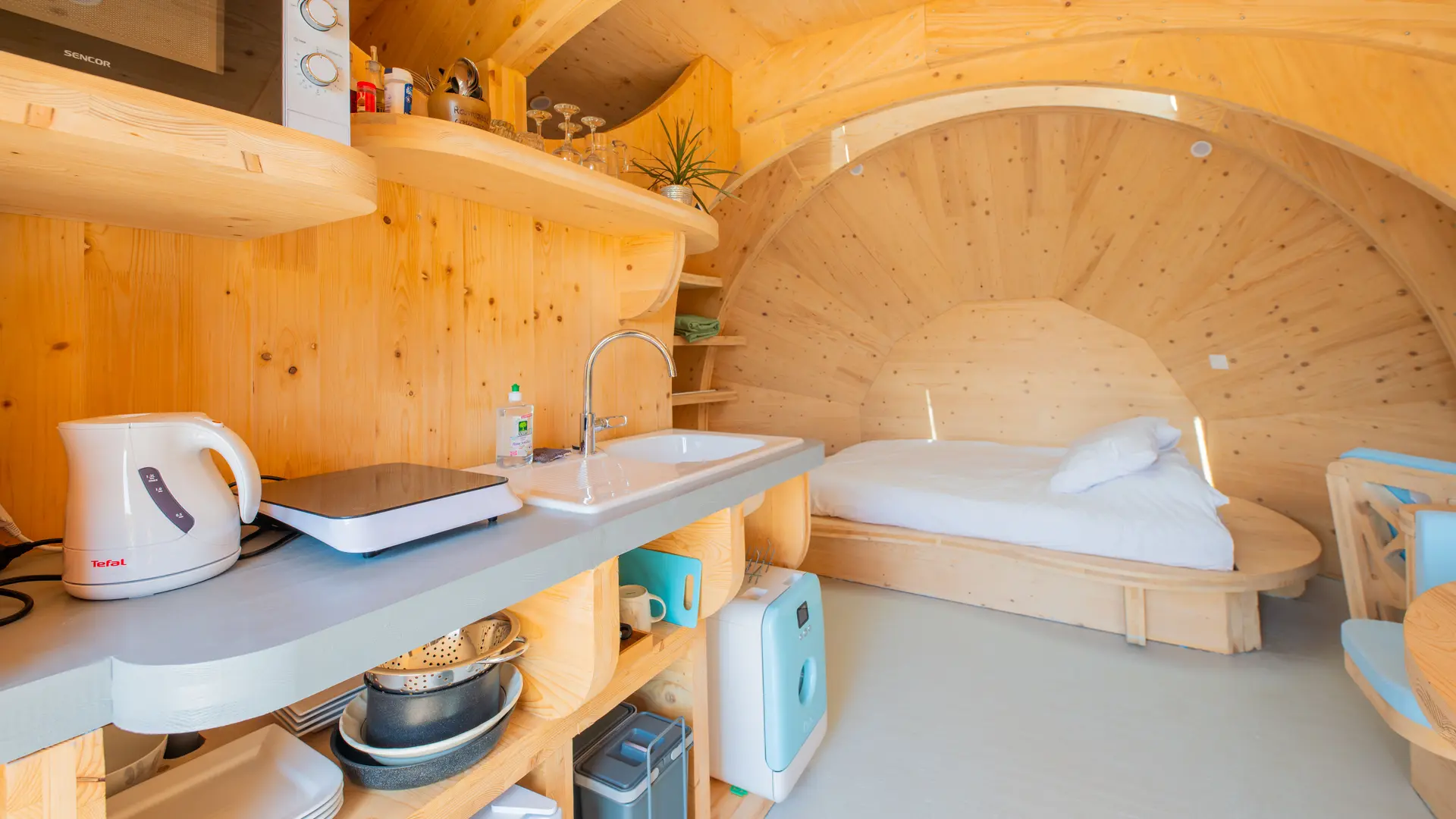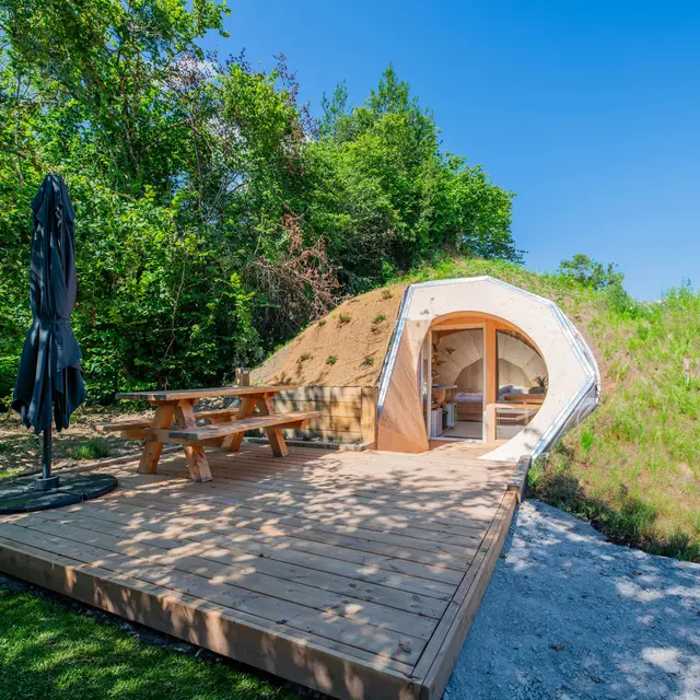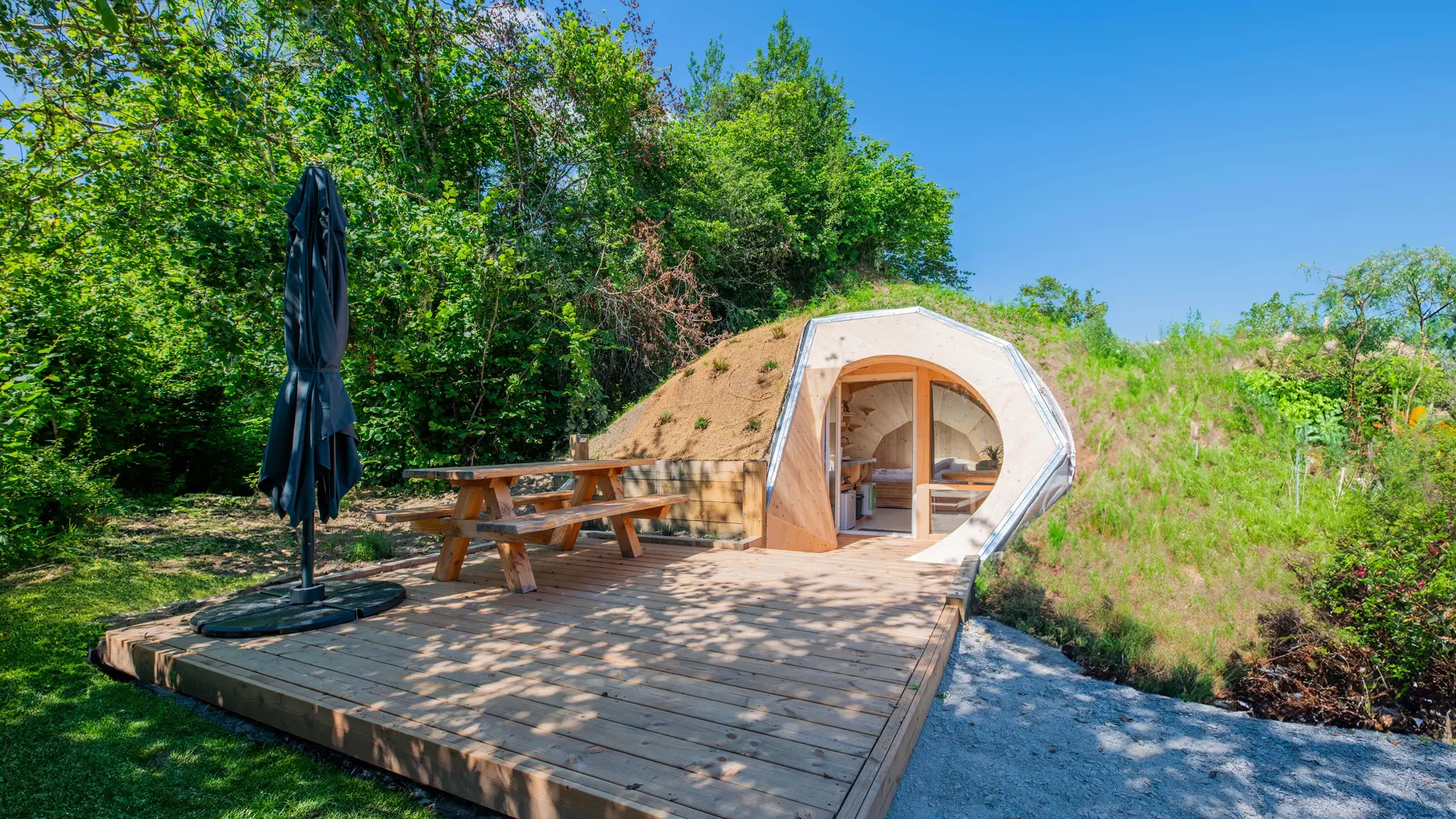 Book now for one of our semi-buried tiny-houses: their rounded shapes, all-wood fittings, quality equipment and environmentally-friendly concepts will make your stay harmonious and unforgettable.