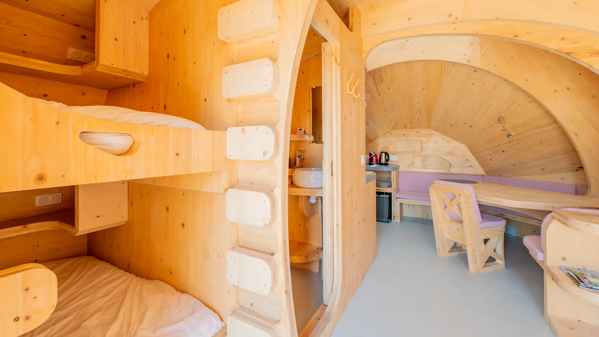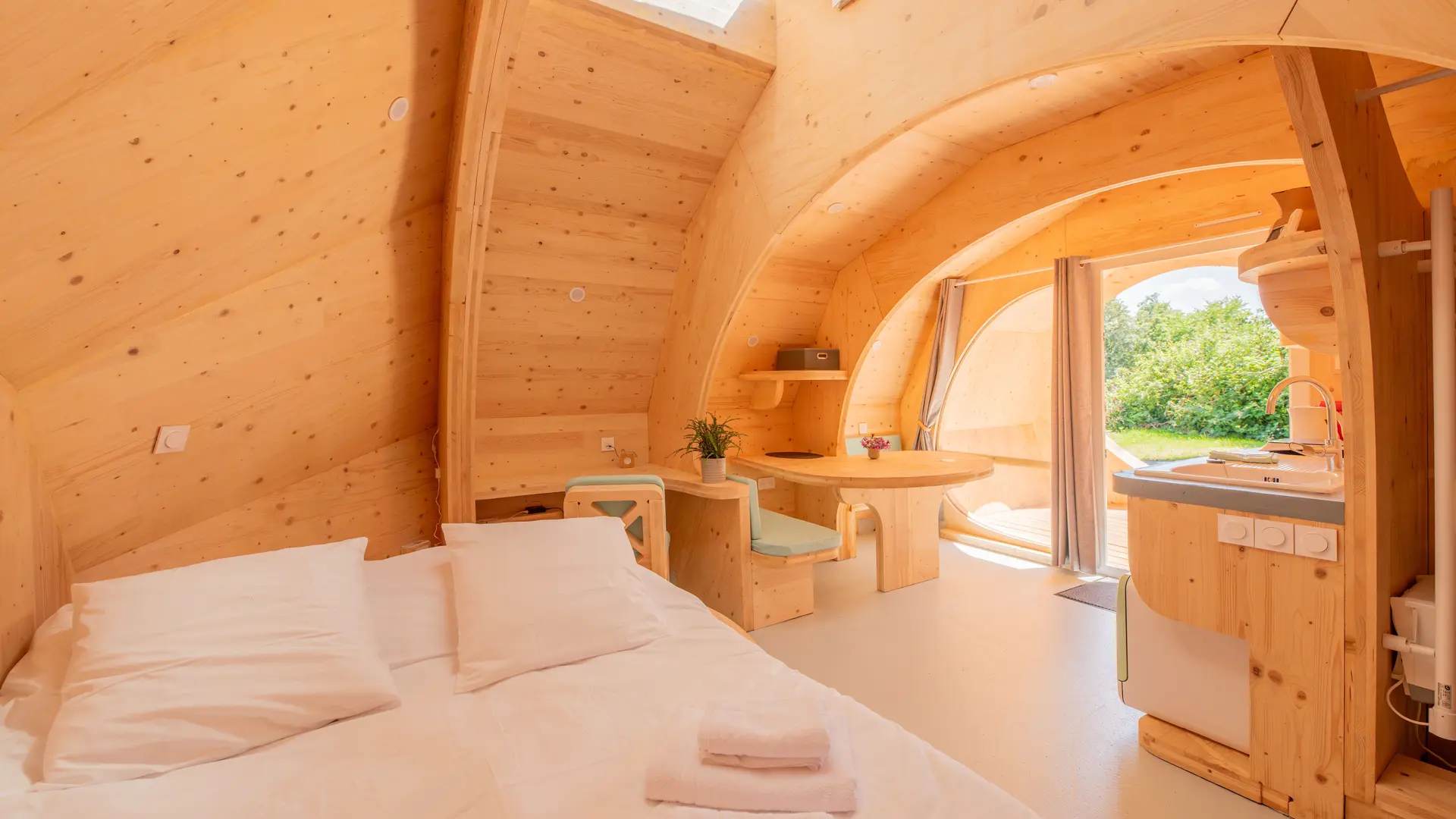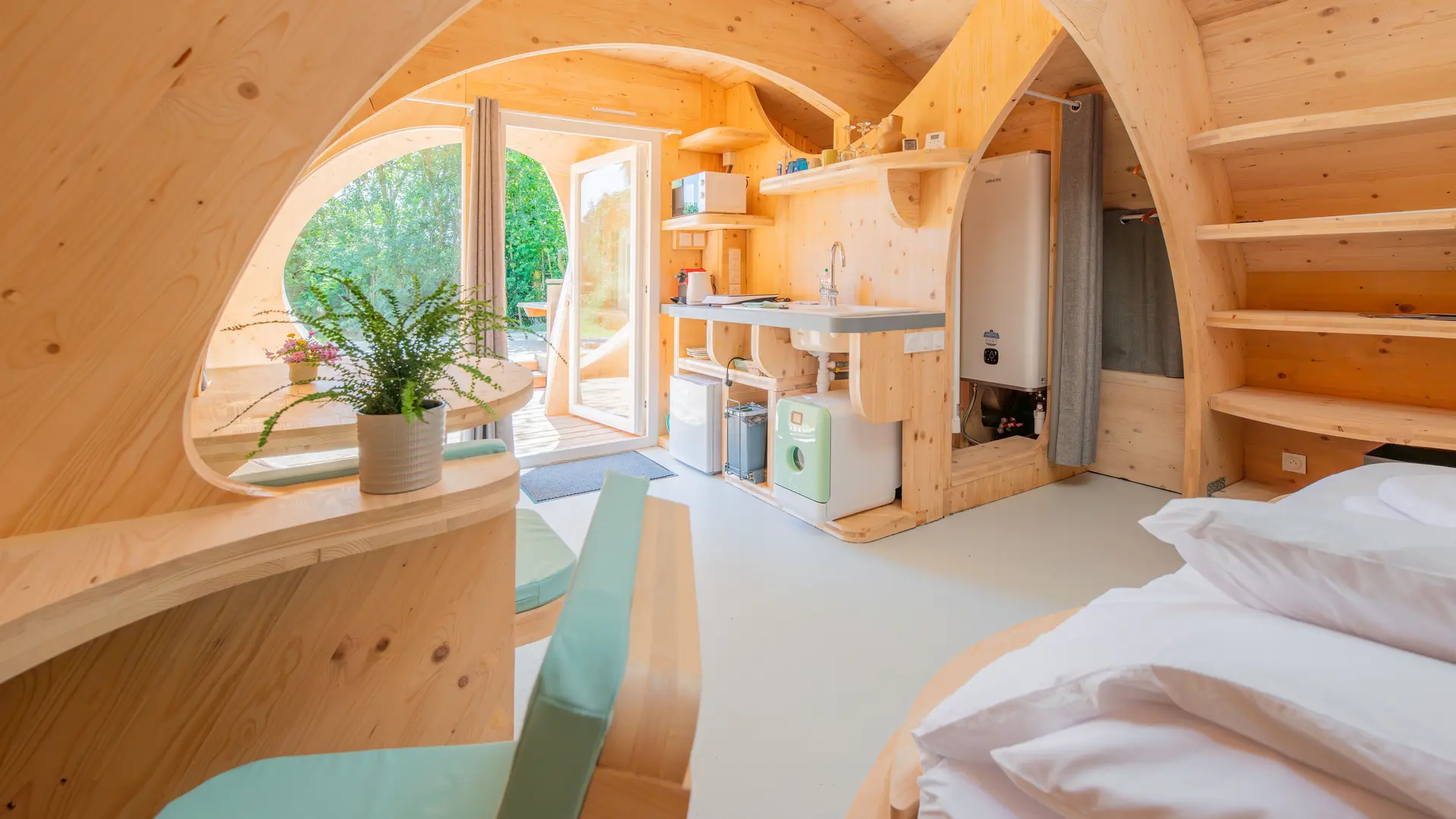 Book now for one of our semi-buried tiny-houses: their rounded shapes, all-wood fittings, quality equipment and environmentally-friendly concepts will make your stay harmonious and unforgettable.
