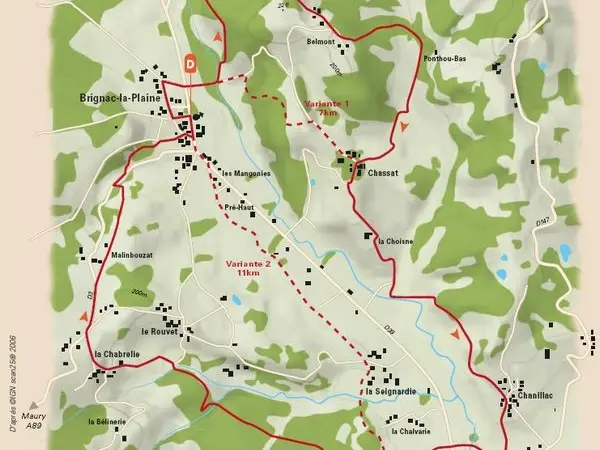 From Brignac, admire the altar, round dovecote, and crosses. Follow the path to Paulliac and enjoy the view on Perpezac's castle and the Puy of Yssandon. Bypass Belmont, Chassat and discover the Chapel and the castle Charles Gobert. Descend into the plainof Mansac and join the wood ages. At the Chabrelie, enjoy a panorama before returning to the village.