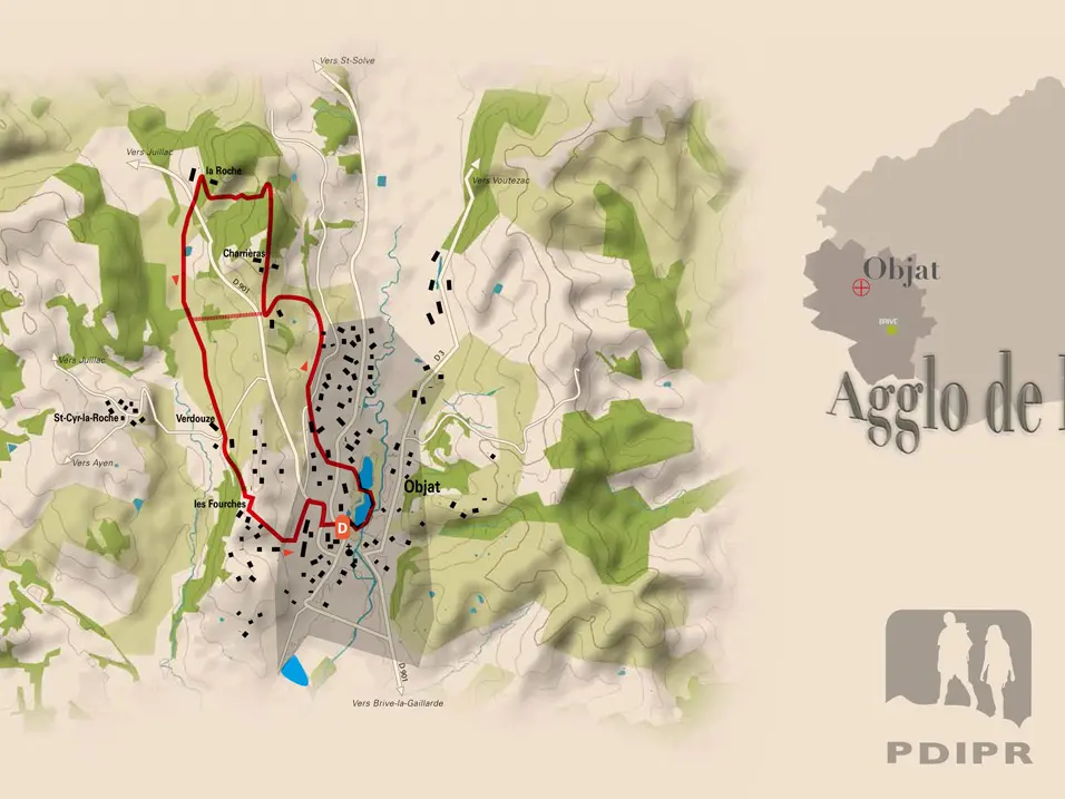 You will take the rue des Diligences which overlooks the valley of the Mayne stream and return to Objat via the station area.