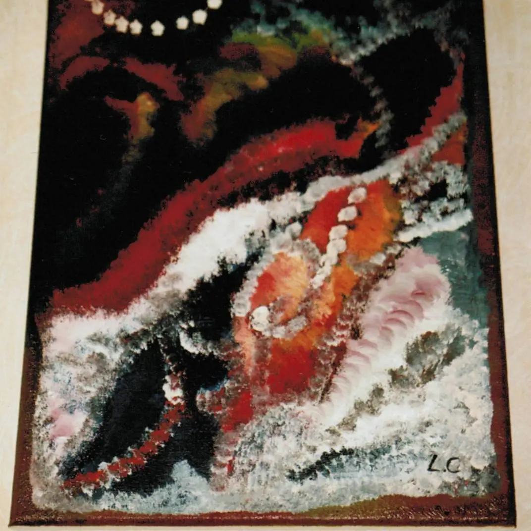 Travelling exhibition of abstract, surrealist, impressionist and visionary paintings. Art on stone, canvas and wood. Lace doilies.