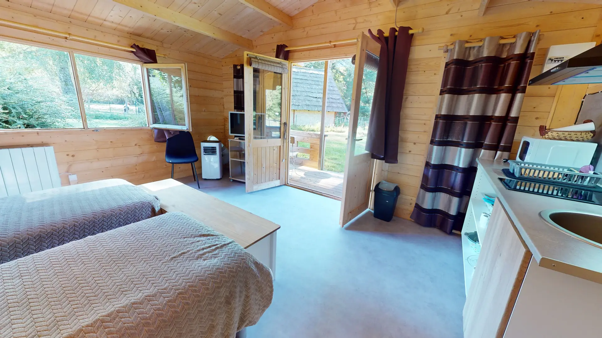 The hut can accommodate 4 to 5 people - the chalet 2 people - the studio 2/4 people and the 3 bedrooms 3 to 4 people each