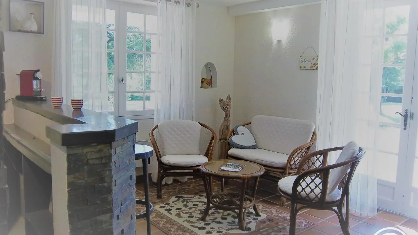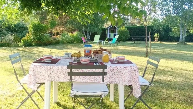 Near BRIVE and TERRASSON, 4 km from A89 exit 18. In a quiet, well-kept setting, we offer you ONE BEDROOM WITH SUITE on one level, with its own entrance. The terraces and large shady garden invite you to relax and unwind. Between Corrèze and Dordogne, the many tourist sites will enchant you: Lascaux, Sarlat, Dordogne Valley, picturesque villages, lake with supervised swimming, castles, caves... Breakfast on the terrace or in the dining room. Possibility of picnics on site and restaurants in the small tourist town of Terrasson. Pets allowed subject to reservation (rate 3 ? per night). Secure parking & easy access. YOU WILL APPRECIATE: the freshness of your accommodation in a stone house, your private living room, 2 ADDITIONAL BEDS INDEPENDENT from the master bedroom.