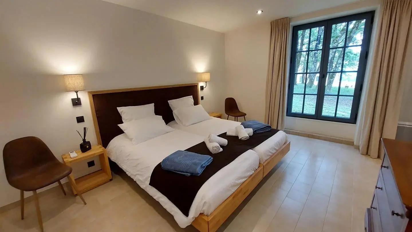 The domain is nestled in an 80.000 sqm wooded park (50.000 sqm of woods and 30.000 sqm of parks) with a breathtaking 180° view of the Dordogne Valley.