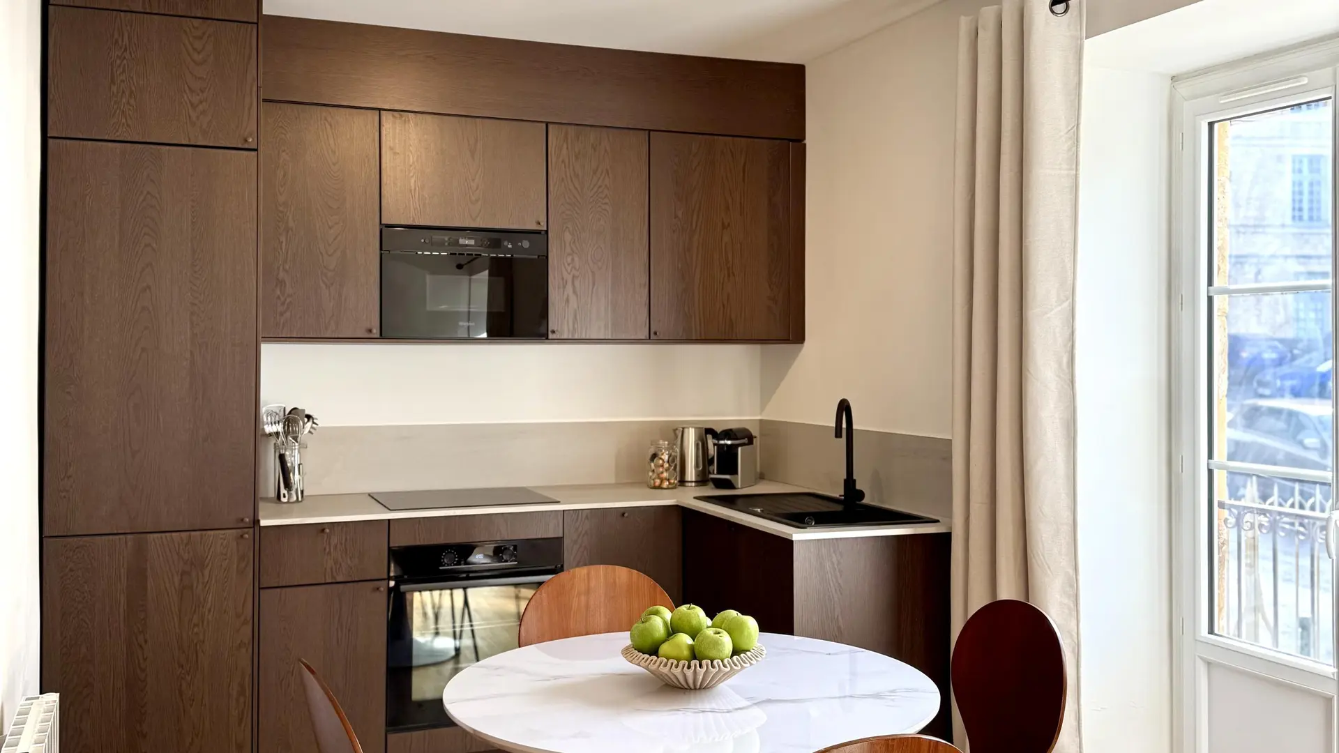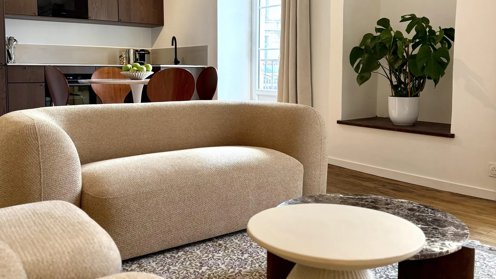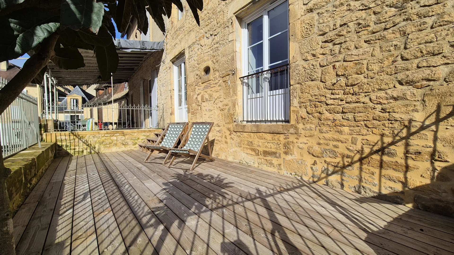 Charming 55 m² fully renovated apartment, ideally located a stone's throw from Sarlat's historic center. It offers two bedrooms and two bathrooms (Italian shower and bath), perfect for a stay with family or friends. The bright living room includes a comfortable lounge and a modern, fully-equipped kitchen. A rare asset in the heart of the city: a large private wooden terrace, ideal for relaxing. Everything is within walking distance: medieval streets, markets, restaurants and shops.