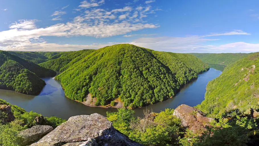 A world of blue and green, nestled between forests, hills and the beautiful Dordogne river: this hamlet of five wooden chalets is located in an exceptional setting, completely self-contained, with no neighbours nearby.