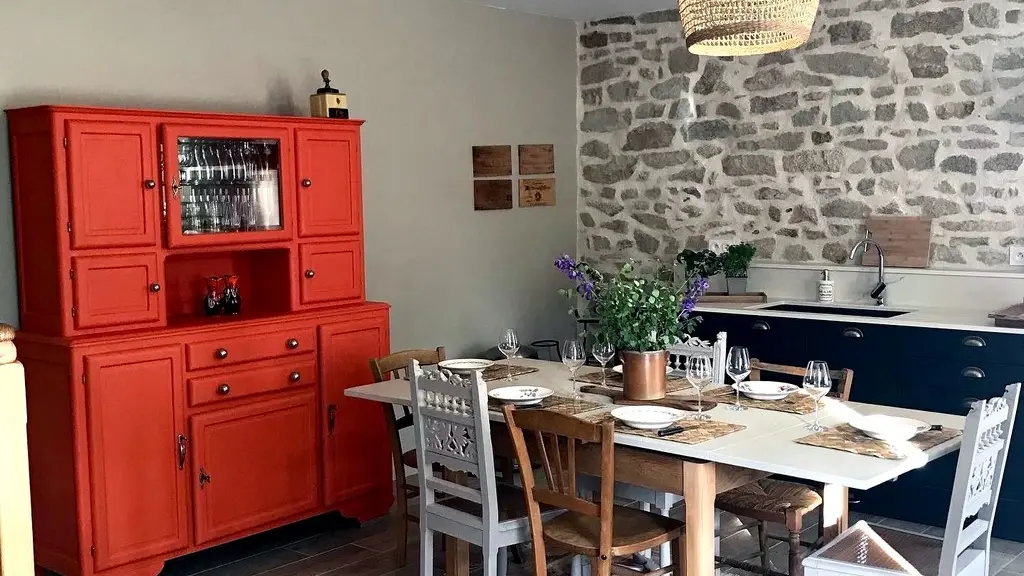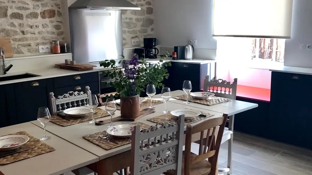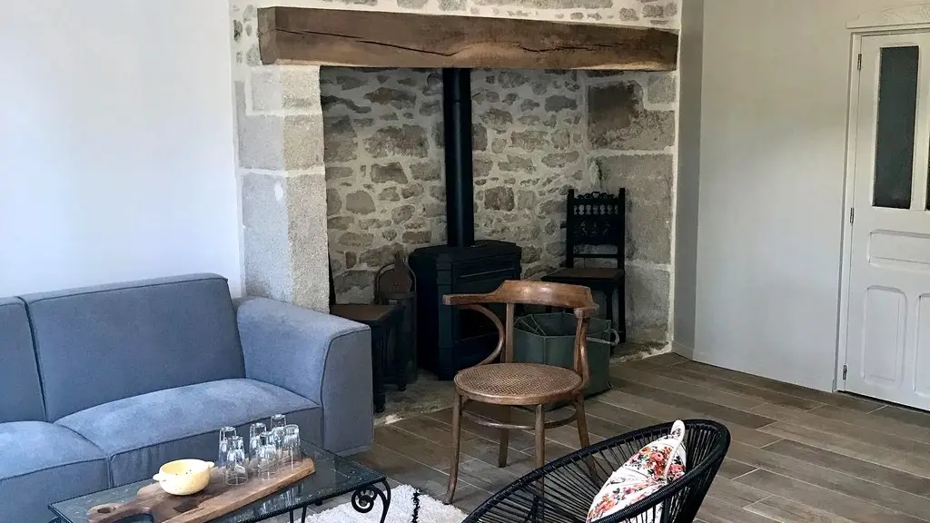 The house, adjoining the owners' house, is composed of a large living room separated by a staircase leading to the bedrooms and the bathroom. The kitchen is functional and well equipped. The living room, warmed in winter by a wood stove, is comfortable. On the first floor, the 3 cozy bedrooms invite you to rest. A shower room and a bathroom complete this ensemble which brilliantly combines past and present.